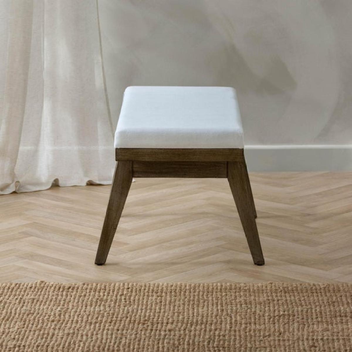 I love this bench for its sleek, minimalist design that easily complements a range of interiors, from modern to Scandi-inspired spaces. Its neutral tones and clean lines make it versatile-perfect as extra seating in a living room, a stylish footstool, or even as a statement piece in a bedroom or hallway. To style it practically, consider swapping the cushion for a colourful or textured cover to add visual interest or using a tray on top to turn it into a handy surface for books or decorative accents. It works especially well in calm, understated schemes but can also serve as a grounding piece amidst more vibrant surroundings.