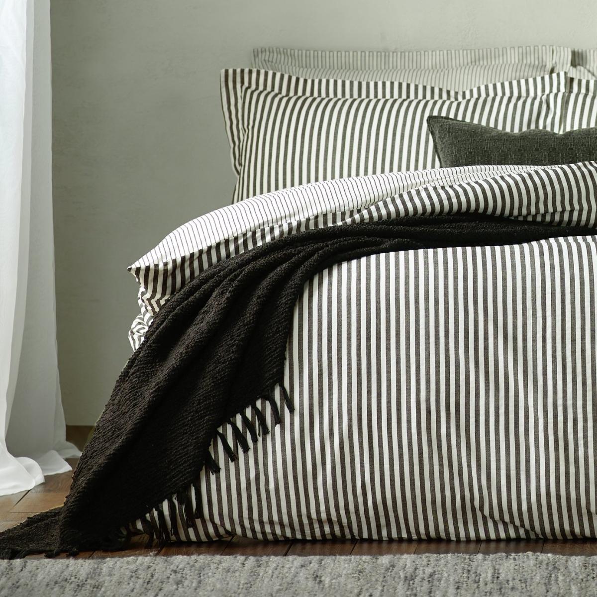 Elevate your bedroom with the Hebden Melange Stripe Duvet Cover Set, crafted from 100% cotton to combine natural comfort with understated design. The subtle striped pattern, inspired by a relaxed, minimalist aesthetic, adds a touch of refined simplicity that effortlessly complements Scandi-style interiors. The soft cotton fabric offers an indulgent feel, ensuring restful nights and a serene start to your day. Designed for both style and functionality, this duvet cover set enhances your daily living experience with premium natural materials. Fabric finish: printed. 100% cotton. 144 thread count. Set includes 1 duvet cover and 2 pillowcases. Bed size: double. Length 200cm, Width 200cm. Full oxford edging detail. Reversible. Buttons for fastening. Oxford pillowcase (s). Pillowcase length 75cm, Width 50cm. Reversible pillowcase (s). Machine washable. Suitable for tumble drying.