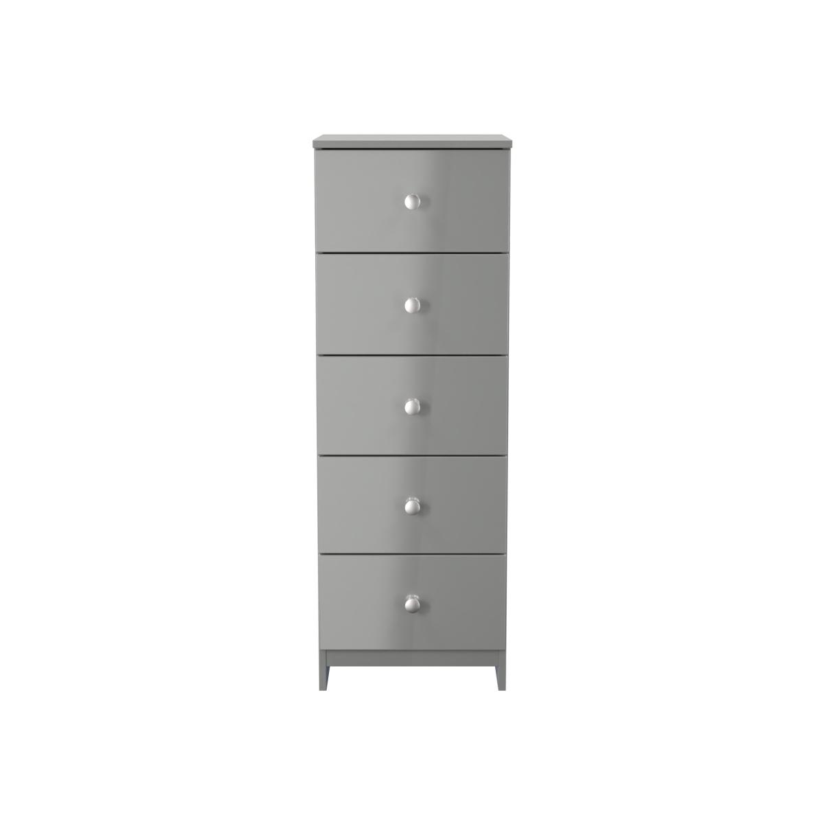 This 5 drawer chest of drawers is practical and stylish. Perfect for any home as a free standing storage unit. With it's clean and elegant design, this new range is the perfect addition to the modern home, featuring a half plinth base and polished metal handles. All our furniture is made in the United Kingdom, to the highest quality. It is delivered direct to your location of choice by one of our two man delivery teams, and come full assembled - Please Note that any handles or legs may be removed durning transit to avoid the risk of damage.