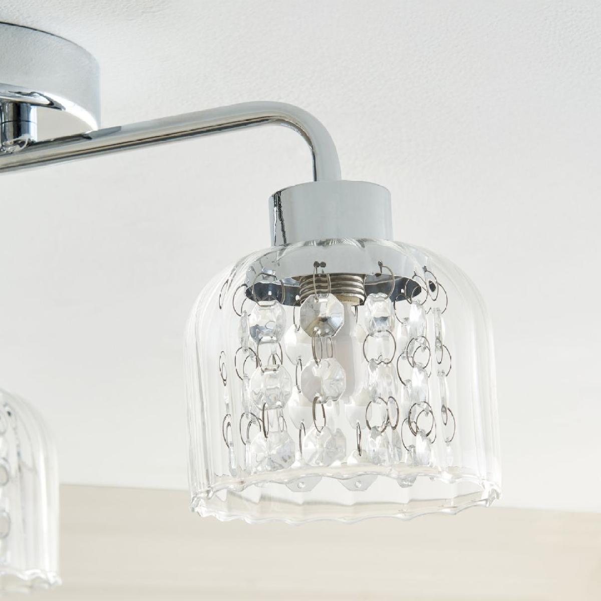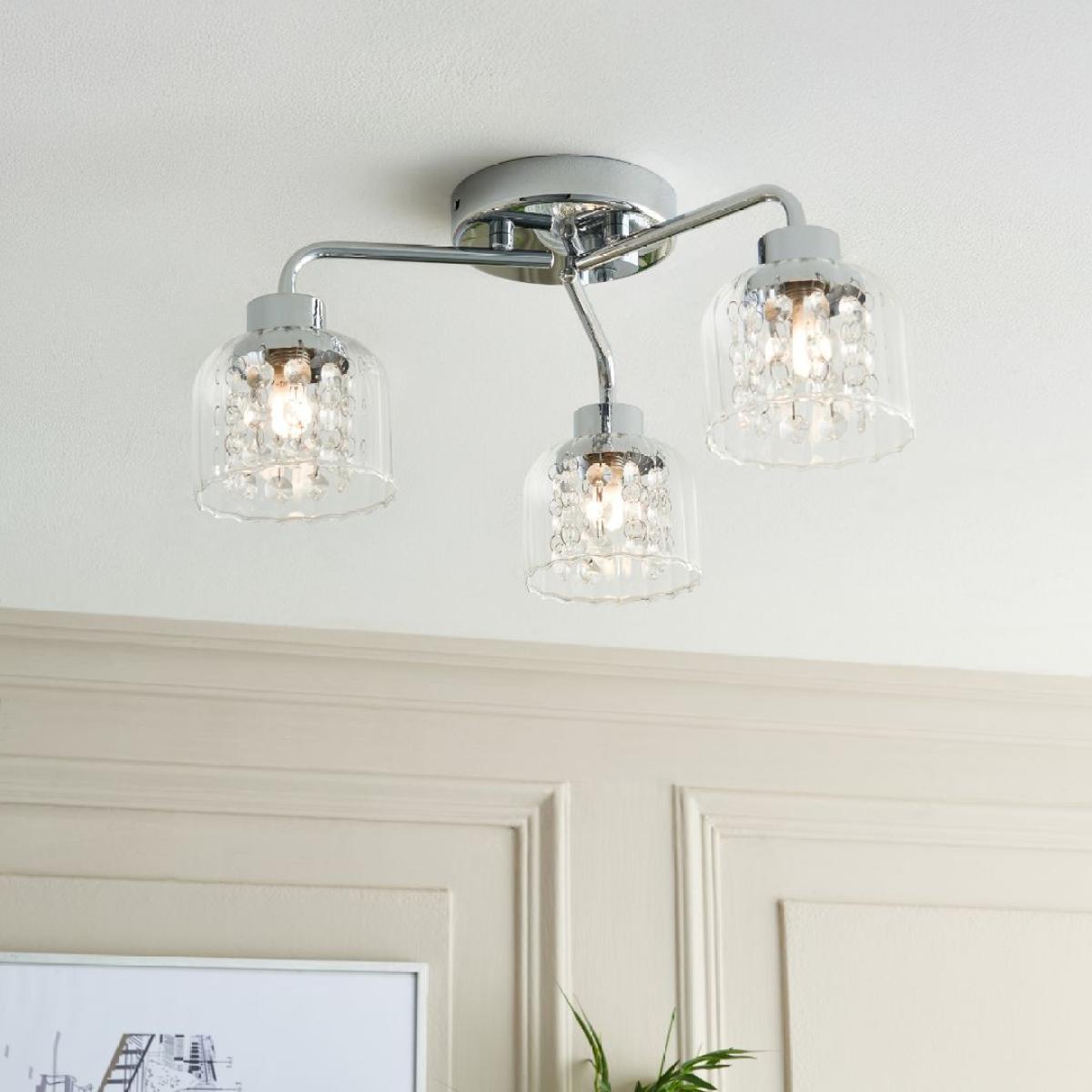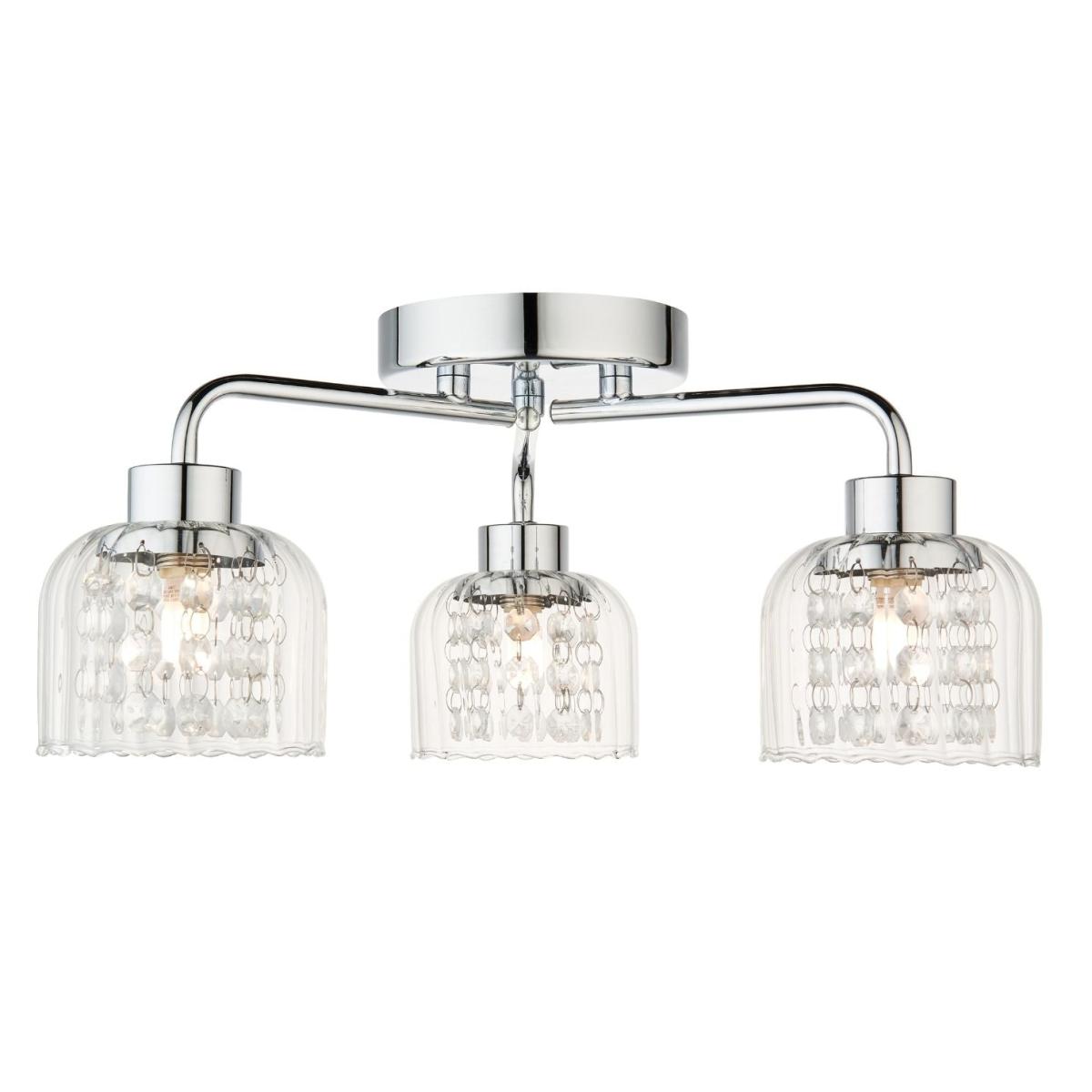 Yarrow 3-light semi-flush ceiling light, featuring wavy glass shades, small dangling crystals and a polished chrome finish.   Yarrow 3-light semi-flush ceiling light, featuring wavy glass shades, small dangling crystals and a polished chrome finish.