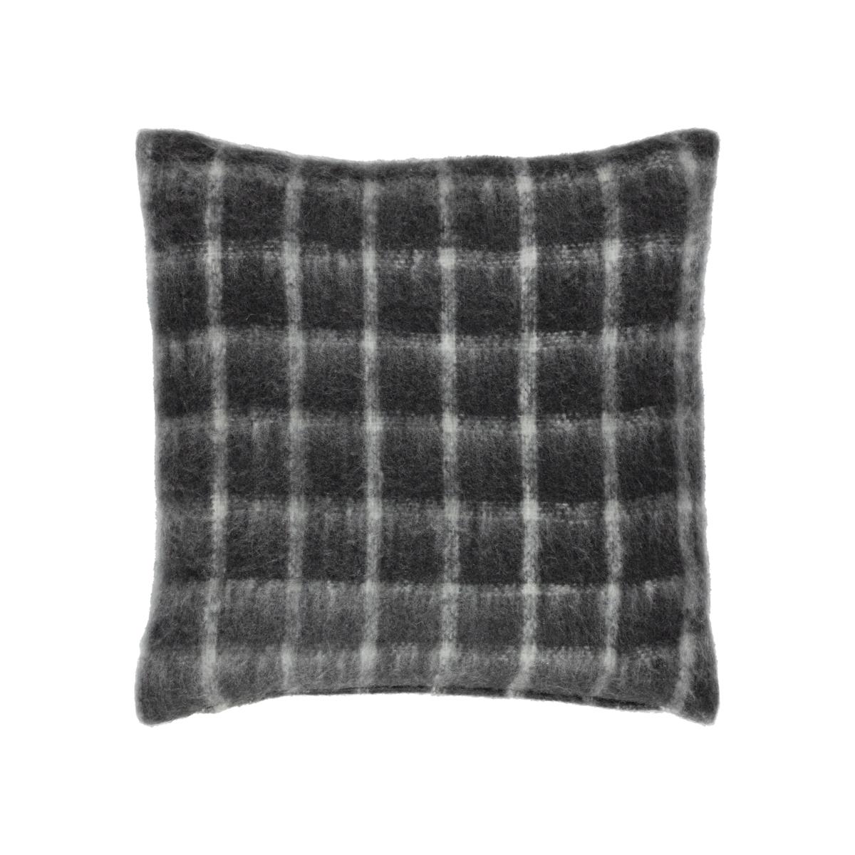 Yarrow Check Faux Mohair Check Feather Rich Cushion - Storm Grey