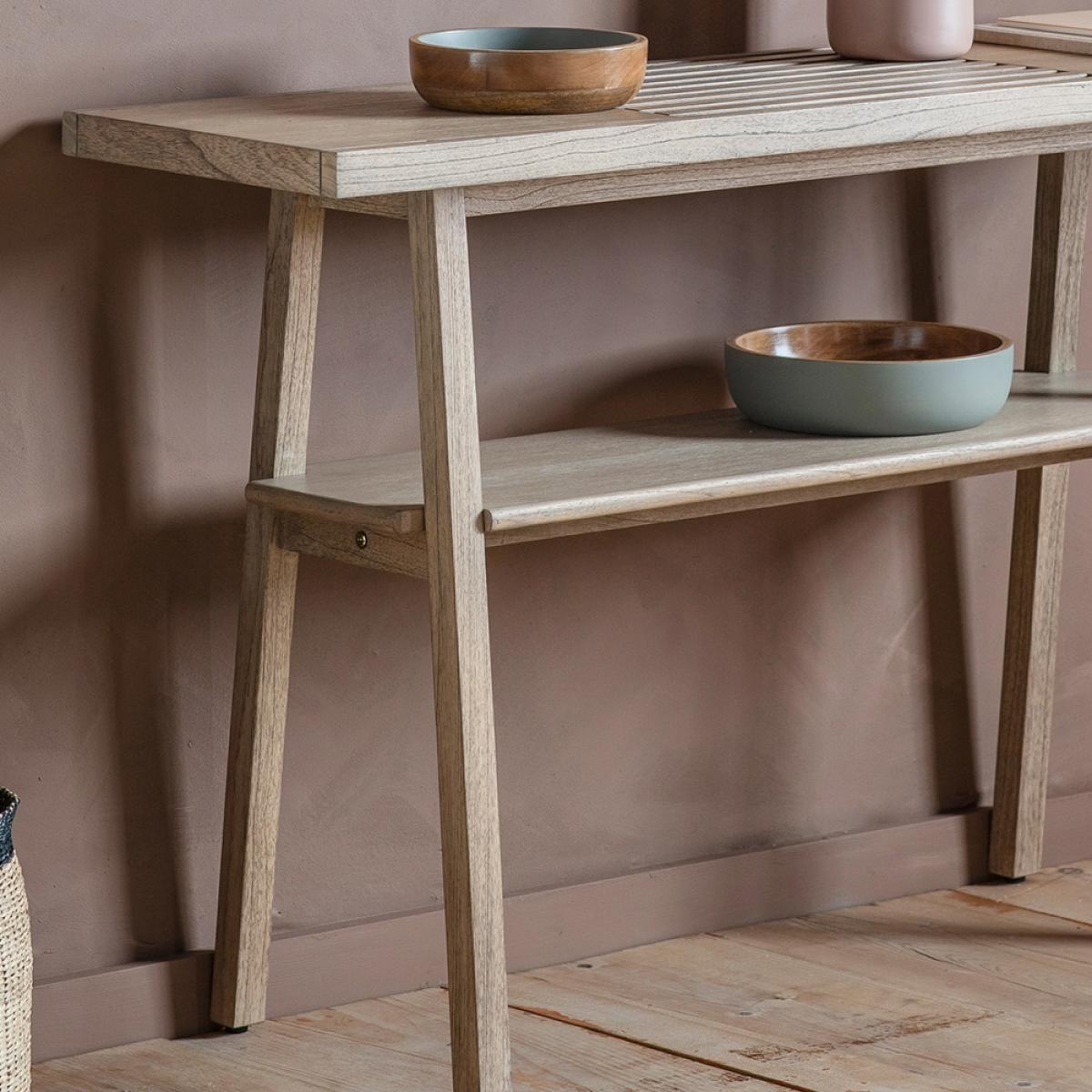 I love the Yasaka console table for its simple, clean lines and natural wooden finish, which makes it incredibly versatile. It works well in a variety of interiors, from minimalist and Scandinavian to rustic or coastal schemes, adding a touch of warmth and texture without overpowering the space. Practical styling tips include using it as an entryway focal point by adding a lamp, a bowl for keys, or a small tray, or as a display surface in the living room for books, decorative bowls, or vases. Its understated design encourages a clutter-free approach, making it both functional and aesthetically pleasing in everyday settings.