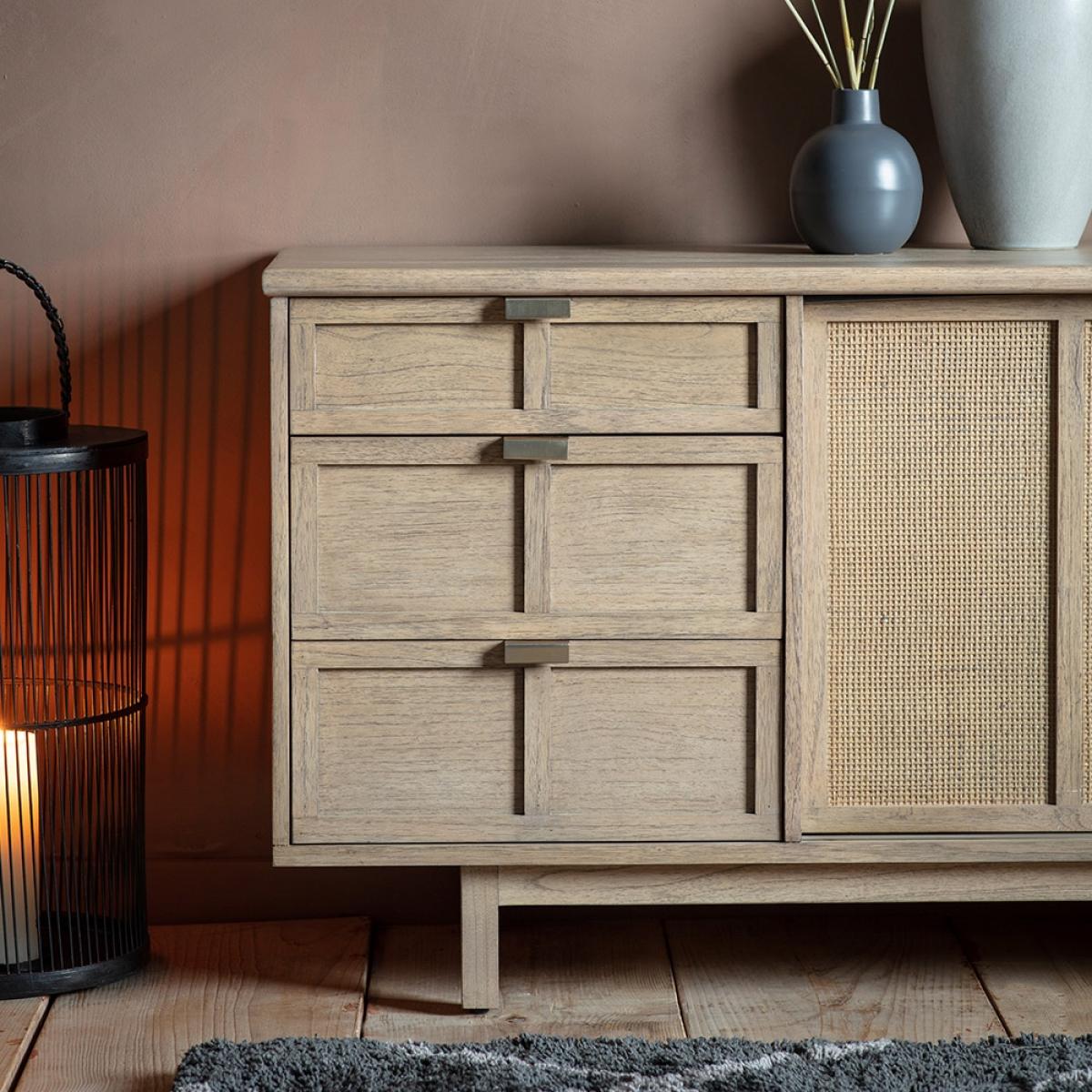 Display all your ornaments in style with the Yasaka Sideboard. Perfect for the living room, kitchen or even in your bedroom. With the clean panel detailing and cane panel inserts, this beauty is a piece of art in itself. Featuring three deep drawers and two sliding doors, you'll feel super organised in no time! Storing all bits and bobs below whilst showcasing all your most-loved items above. Create that Scandi atmosphere you've been longing for.