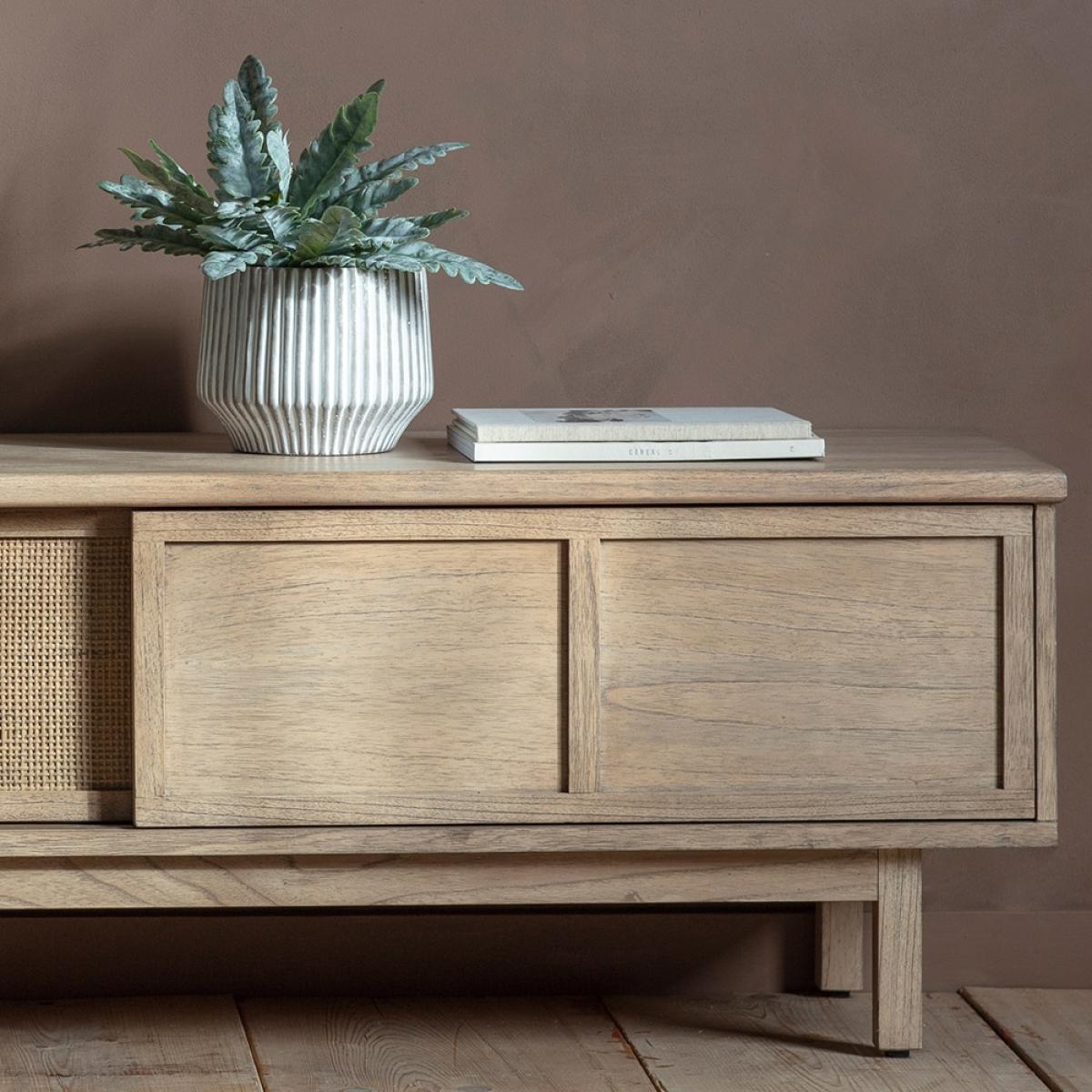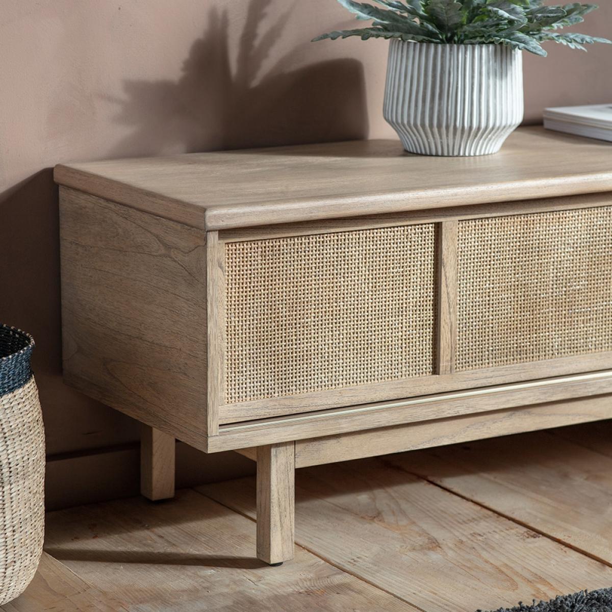 I love this media unit for its sleek, understated design that works well in both contemporary and Scandi-inspired interiors. Its natural wood finish brings warmth and texture, making it versatile for various colour schemes. The sliding doors are practical for hiding away remote controls and clutter, while the open space offers a perfect spot to display or organise electronics and decorative accessories. For styling, consider layering a few books or plants on top to personalise the look, and pair it with neutral-toned accessories for a calm, minimalist vibe. This piece is especially good in living rooms aiming for a relaxed, organised aesthetic without overwhelming the space.