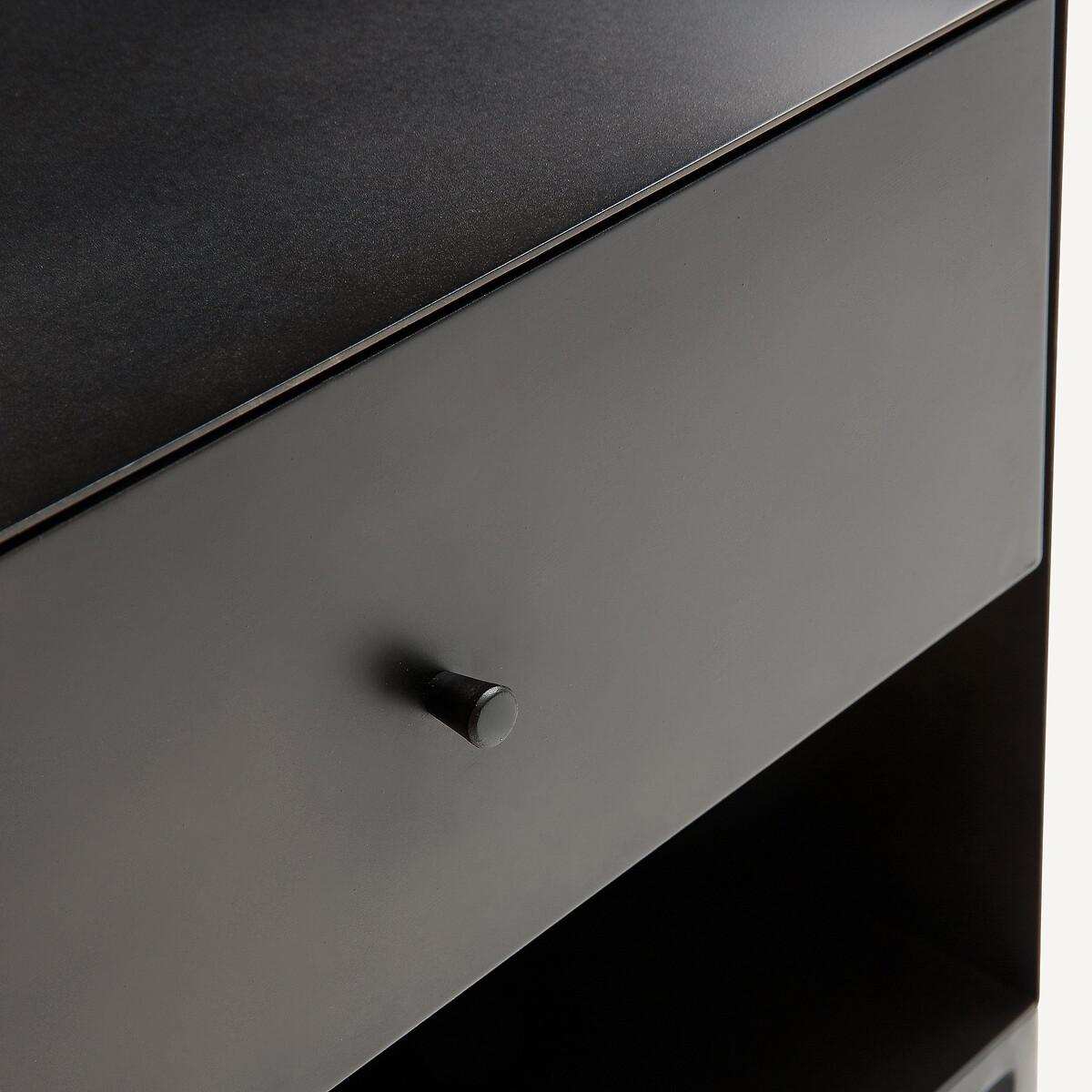 I love this steel bedside table for its sleek, minimalist look and versatile design. Its monochrome palette and slim profile make it a great addition to modern or industrial-style bedrooms, while the practical drawer and open shelf offer storage without clutter. It works particularly well in urban, contemporary interiors, or alongside other monochrome or metallic finishes. When styling, consider adding a simple table lamp, a small plant, or a few books on top for a functional, stylish touch. Its understated elegance allows it to blend seamlessly with both bold and understated décors, making it a very practical yet chic choice.