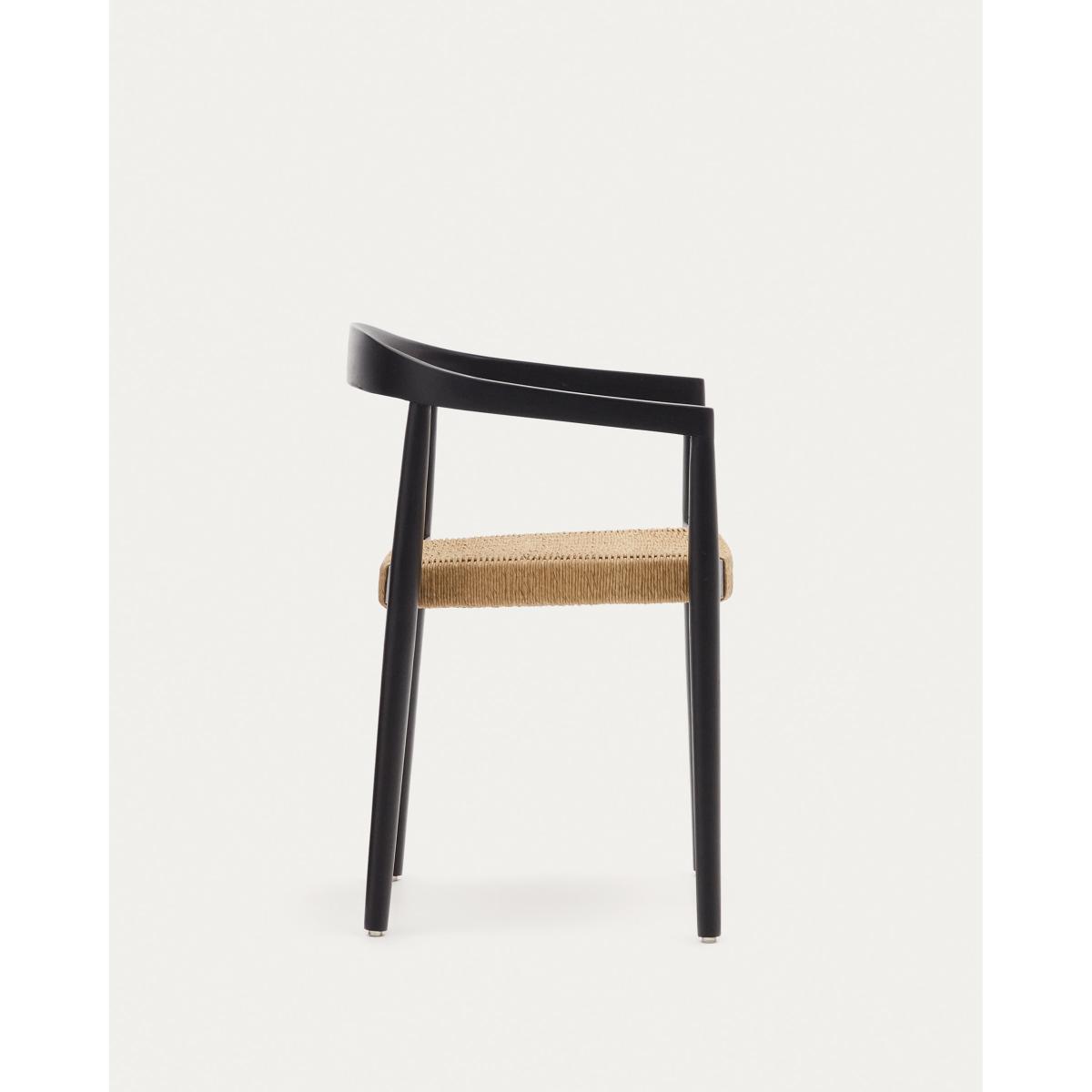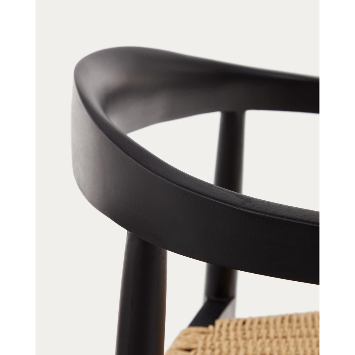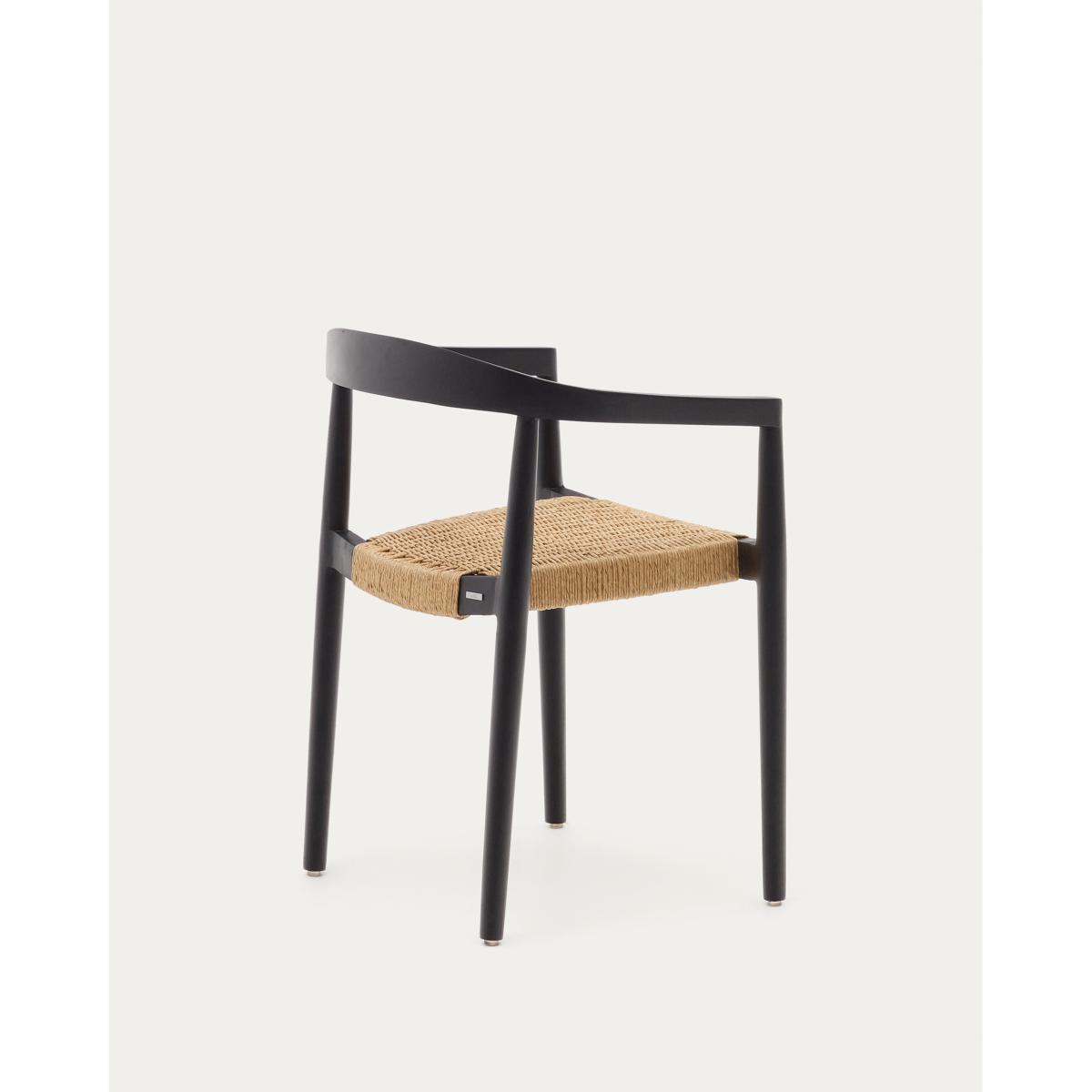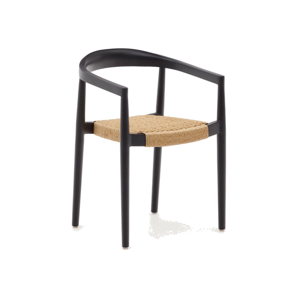Ydalia stackable outdoor chair in solid teak wood with black finish and natural rope