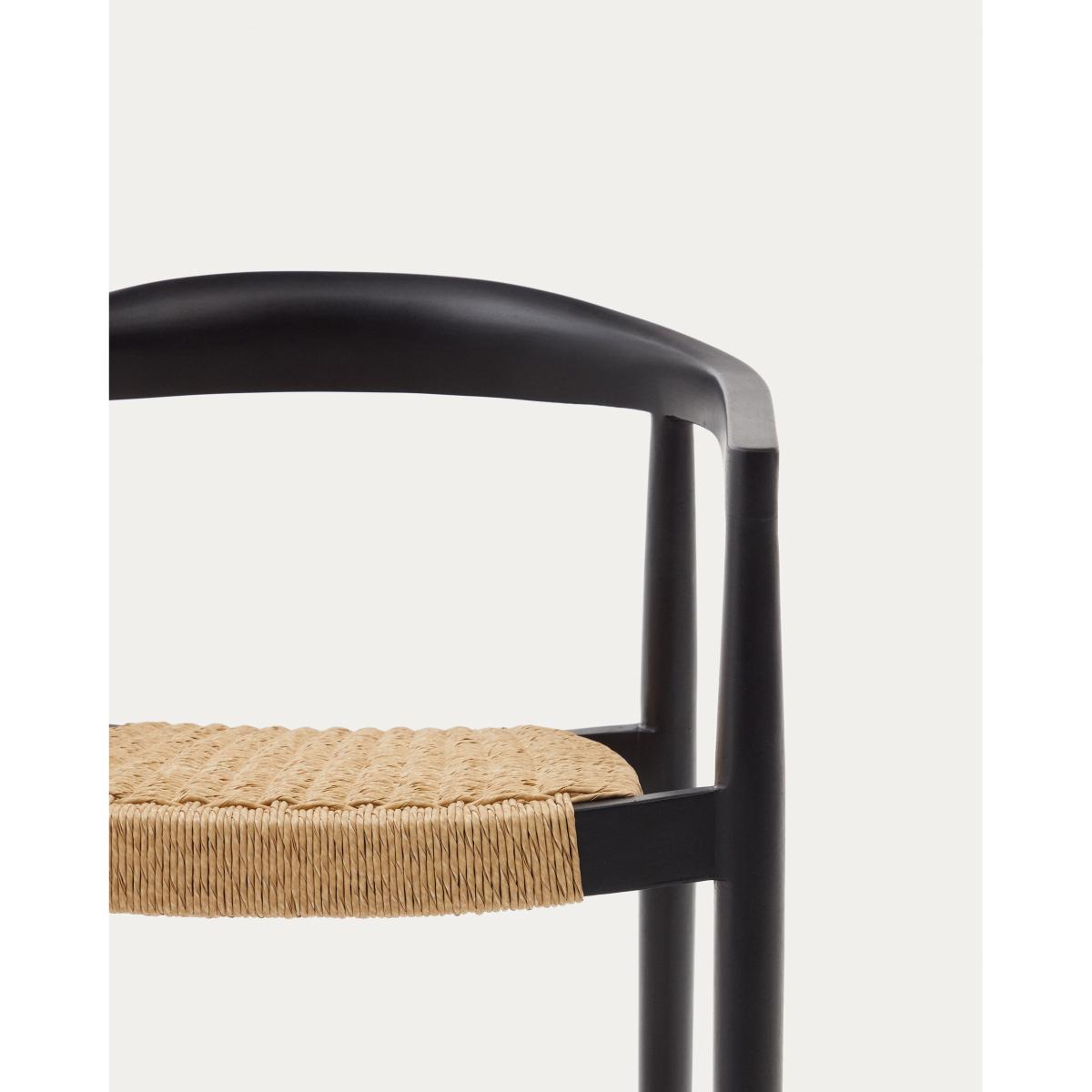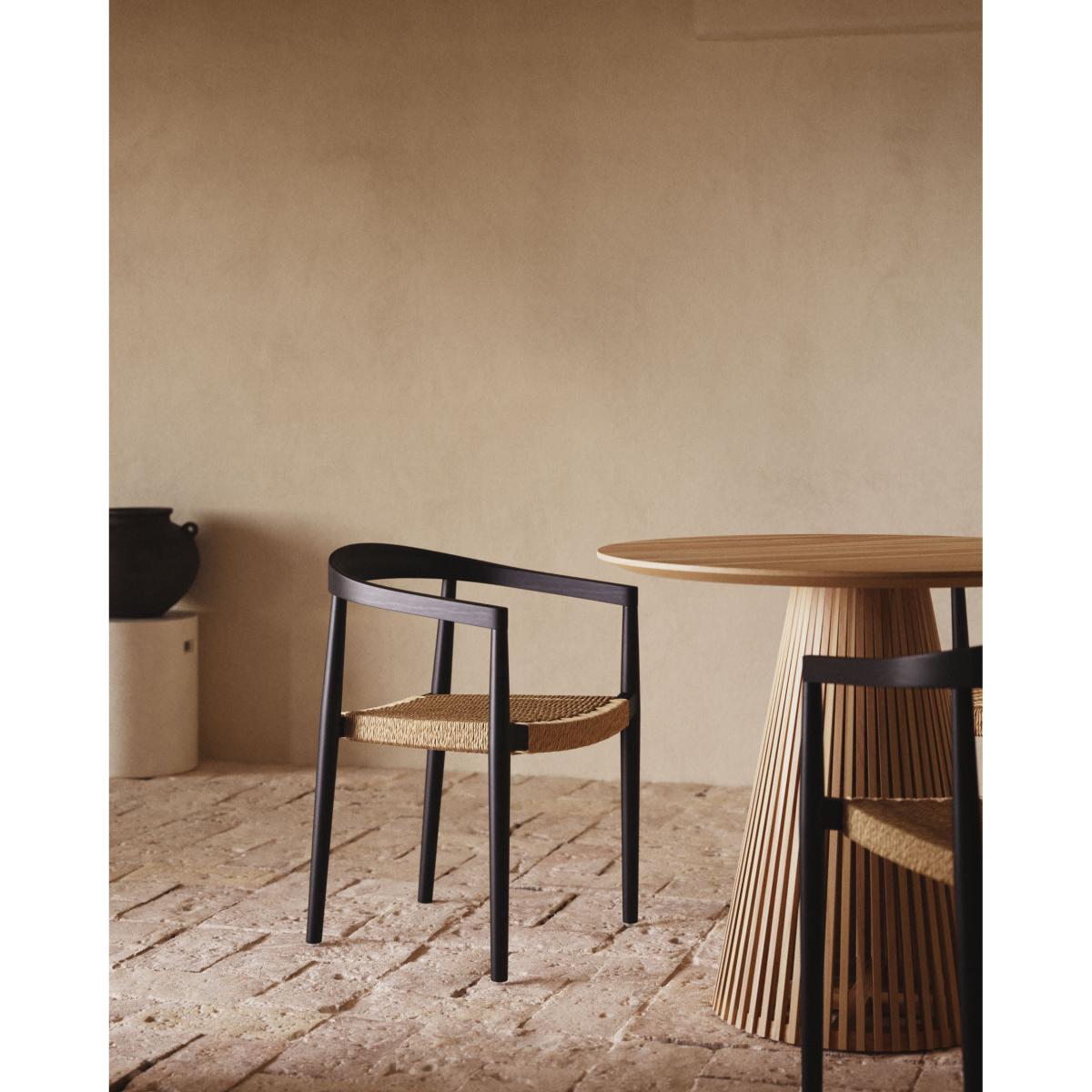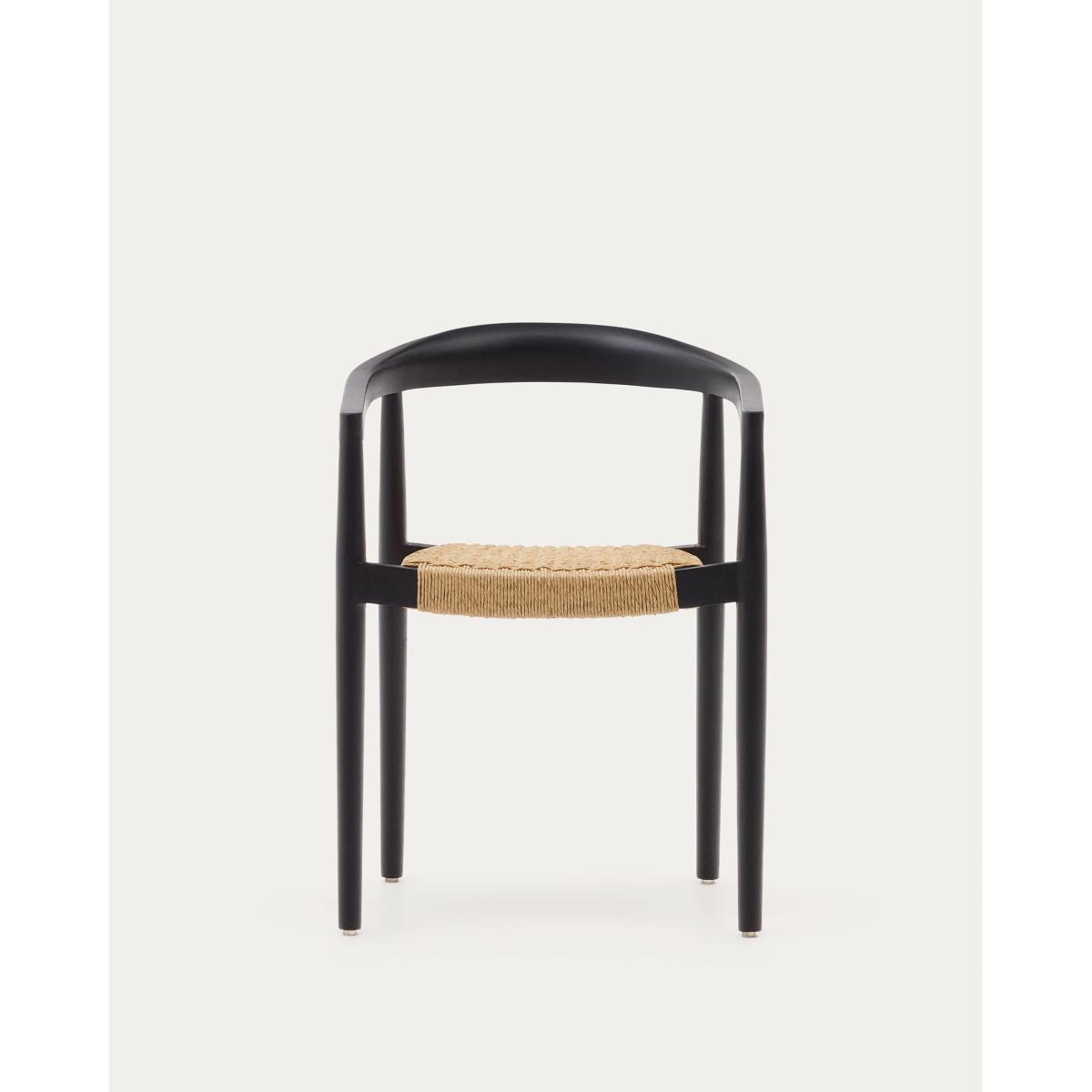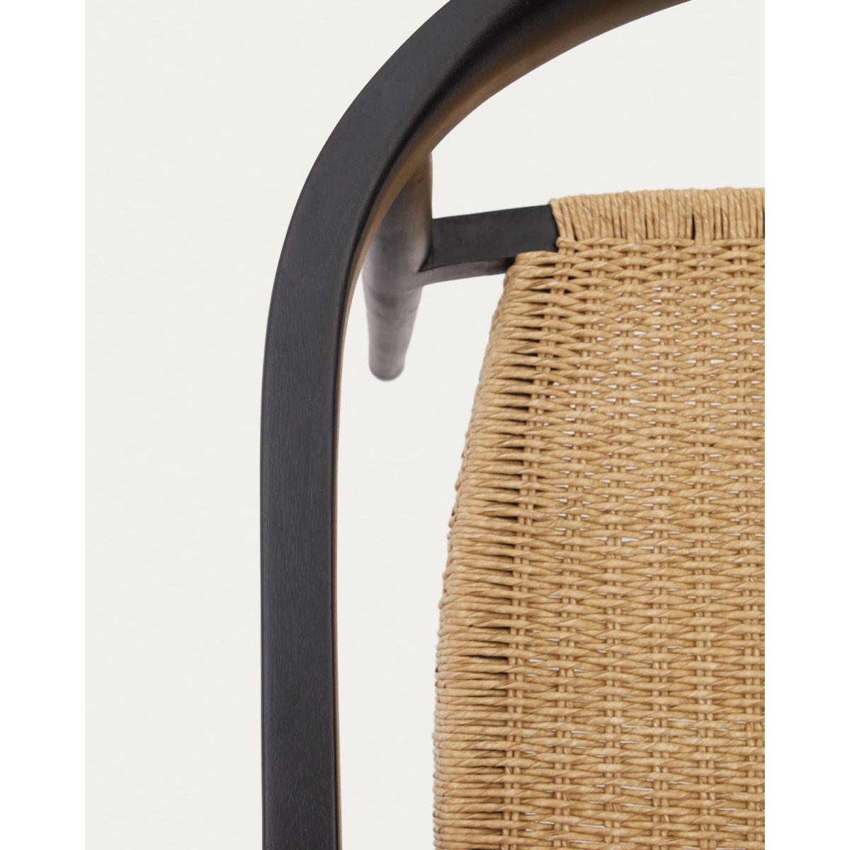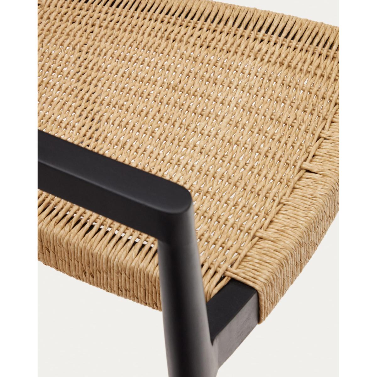 Ydalia stackable outdoor chair in solid teak wood with black finish and natural rope