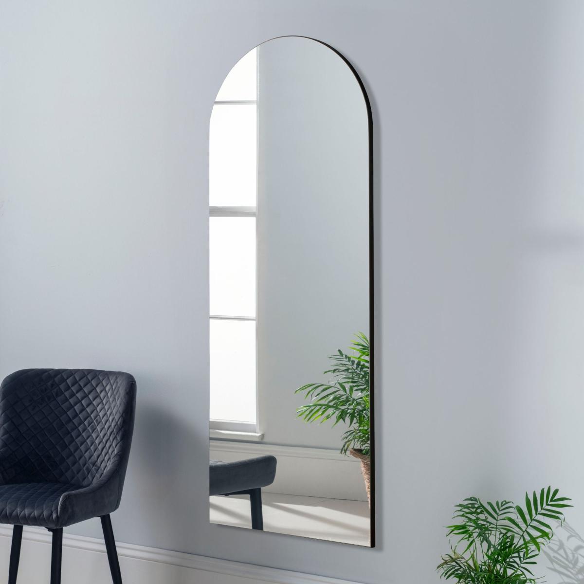* Stylish, Narrow Design* Enhances Natural Light* Wall Mountable* Includes 2 Secure Hooks* Handmade in the UK Enhance your home with this elegant arched full-length mirror. The wood frame construction offers timeless appeal whilst boosting natural light in your space. Easy to mount with two secure hooks, it’s handmade in the UK, reflecting exceptional craftsmanship and design.