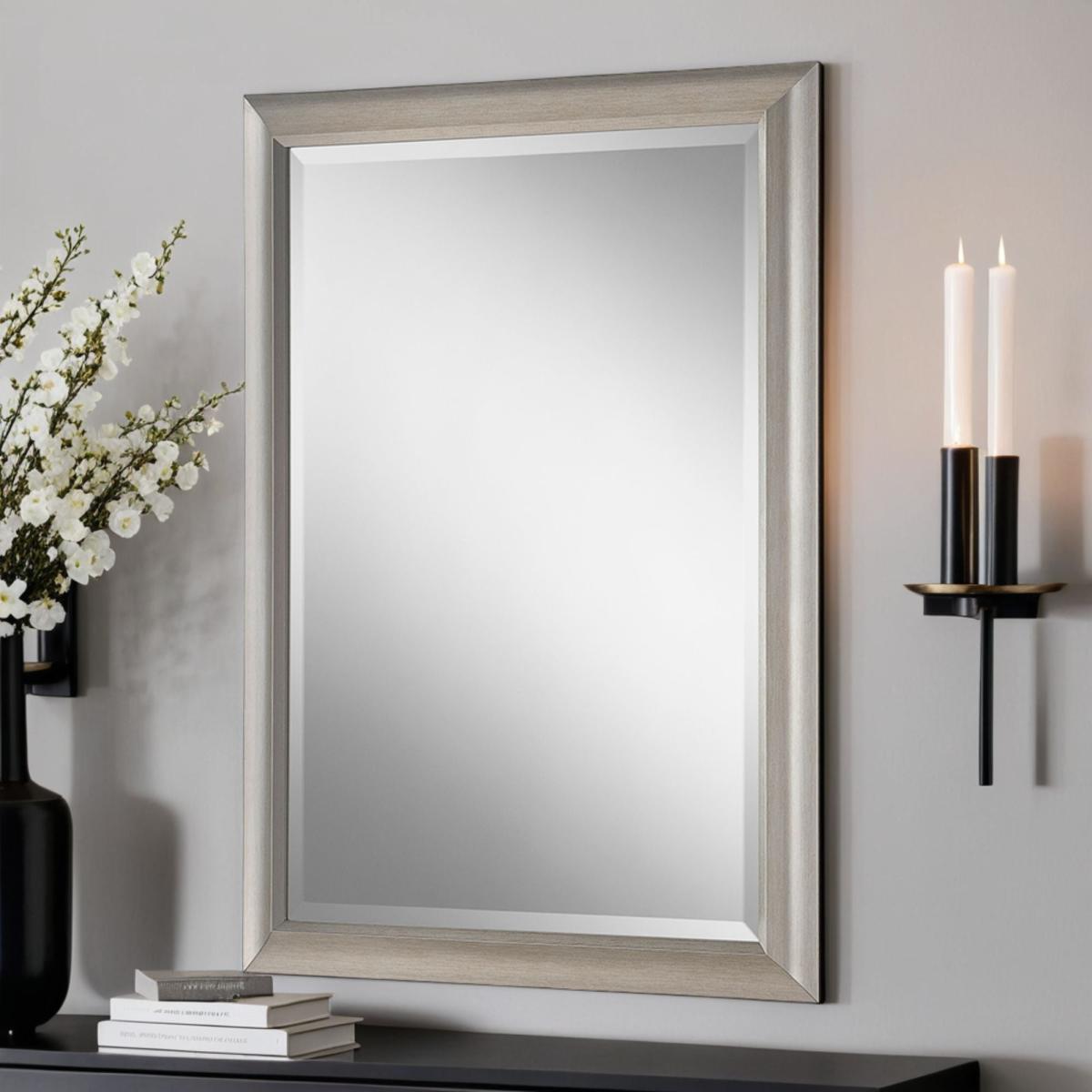 I particularly like this sleek silver-framed wall mirror for its clean lines and lightly brushed finish - it brings a sense of light and space without feeling cold. It sits neatly in contemporary, Scandinavian or understated minimalist schemes and even lifts a traditional hallway when paired with warm timber or soft textiles. For styling, hang it above a narrow console or dressing table to bounce daylight into darker corners. Pair with a pair of slim wall-mounted sconces or a simple cluster of potted greenery on the surface below. In bathrooms, use it as a neat mid-sized vanity mirror; in living rooms, lean it against the wall on top of a low cabinet to create a relaxed, gallery-style vignette.