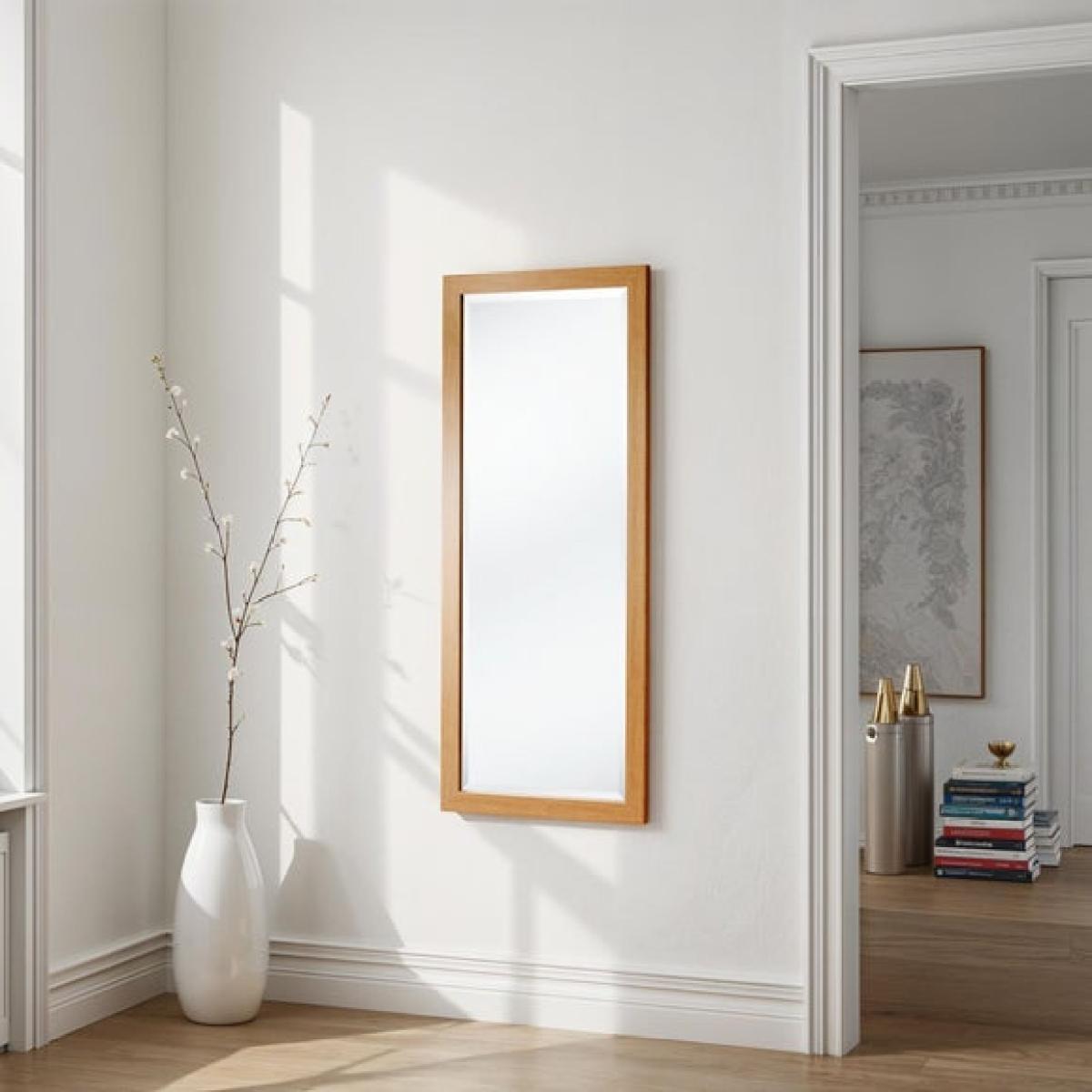 I really like the Yearn mirror because its oak effect and bevelled edge add a subtle warmth and sophistication, making it versatile for many interiors. It works particularly well in contemporary or Scandinavian-style spaces due to its clean lines and natural finish, but it can also complement more rustic or minimalist schemes. Practical styling tips include leaning it against a feature wall in a hallway or dressing room for a relaxed feel, or hanging it above a console table to create the illusion of more space and light. Its simple yet stylish design makes it a functional statement piece that enhances both small and large rooms without overwhelming the decor.