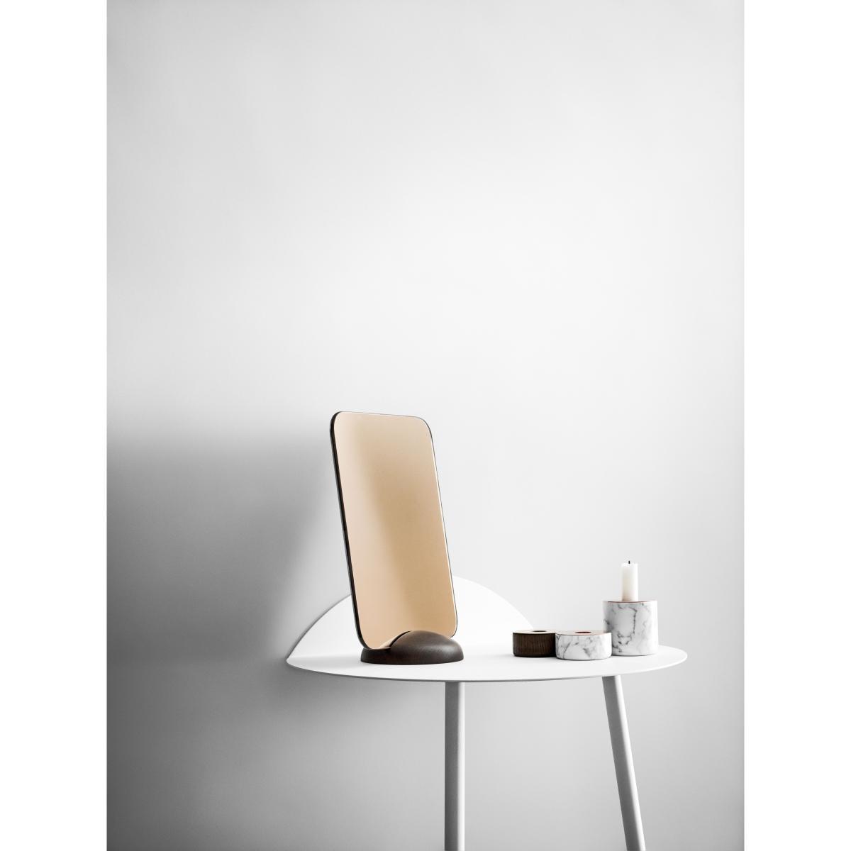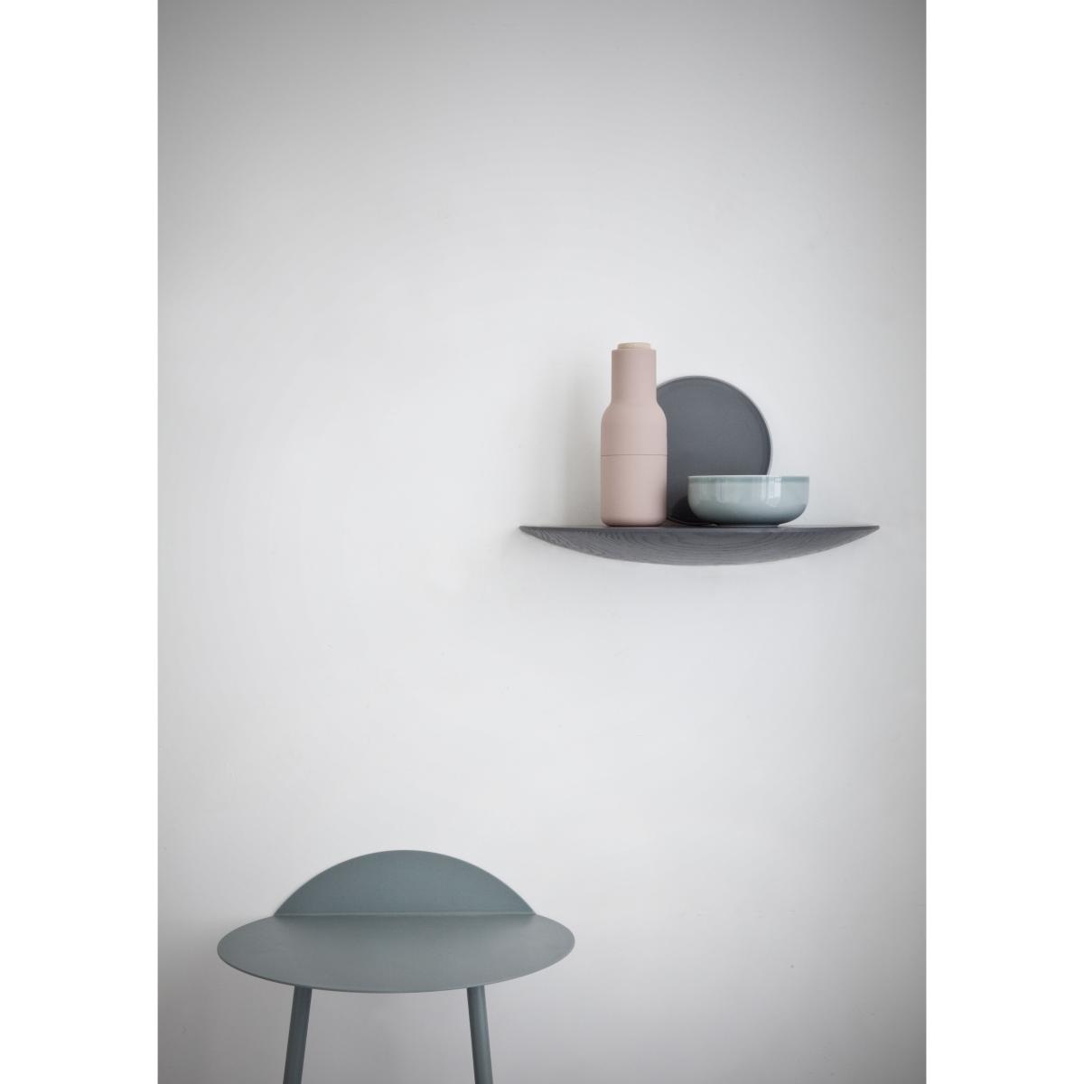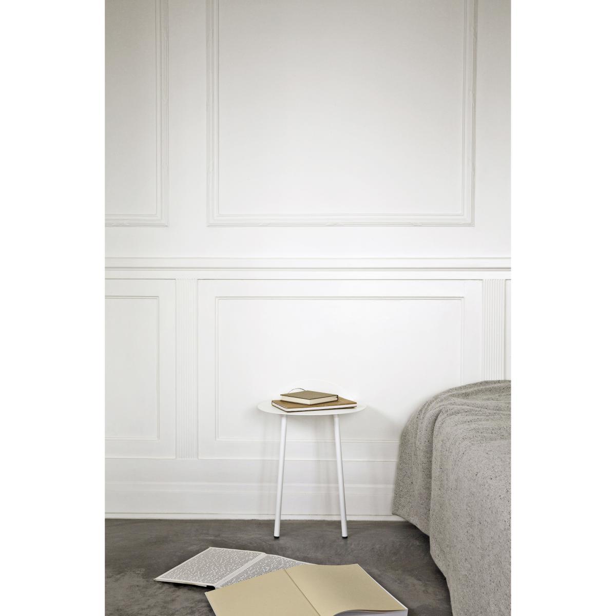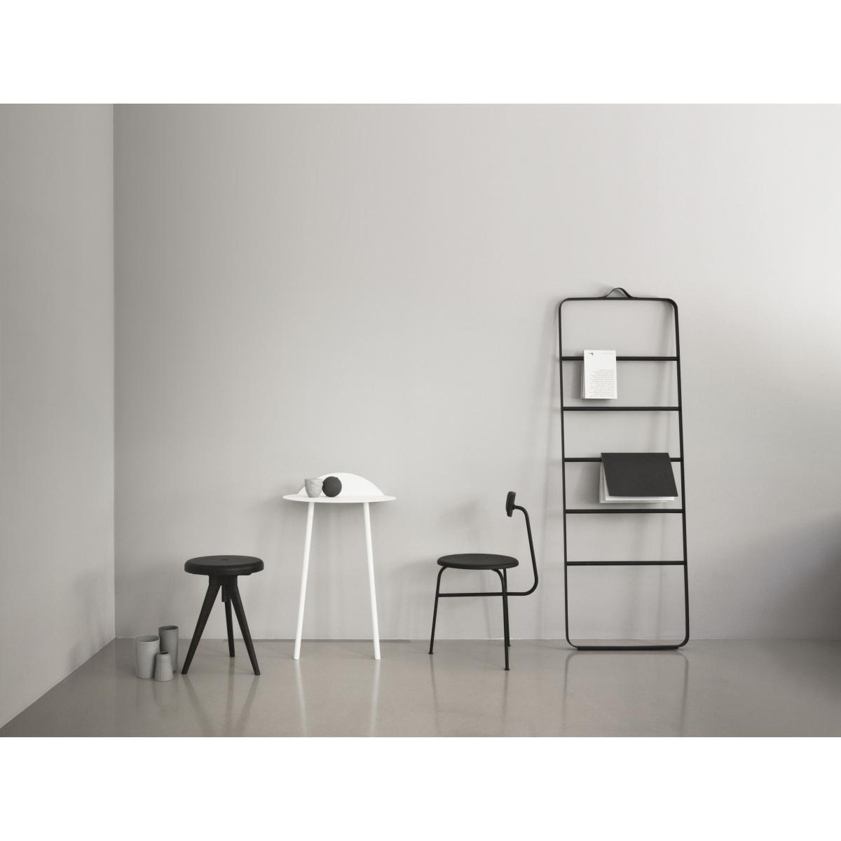 Yeh Wall Table is designed by Taiwan-based designer, Kenyon Yeh. He found the inspiration to this mobile side-table after observing a cheerleading practise at a neighbouring school in his hometown. Kenyon Yeh: "I was walking to my studio and passed a school where two students were practising balance and strength for their cheerleading routines. The guy was with his back resting against the wall, in a sitting position without a chair, while the girl was standing on his thighs with her arms stretched out". The scene inspired Kenyon to design a minimalistic table with clean lines standing on only two legs. To compensate the two missing legs, a part of the thin tabletop is bent upwards in a 90-degree angle against the wall. Two thin and slightly angled tubular steel legs give additional stability. No other fixtures are needed for the table to support what's placed on top of it. "Yeh Wall Table mimics a person in sitting position with the back resting against the wall and the legs firmly placed on the ground. If muscles and bone structure carries the person, coated steel is what gives the table necessary stability. These characteristics that give an imaginative floating sensation and added value to the design", says to Kenyon. Yeh Wall Table is a functional design that can be used as a side-table for books, plants, a table lamp or small objects. It's light, mobile and a clever solution for homes with limited spaces. It's presented in a high and a low version.