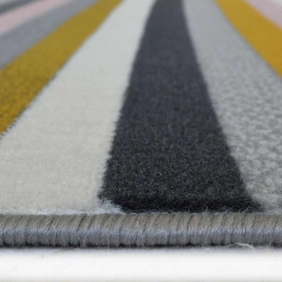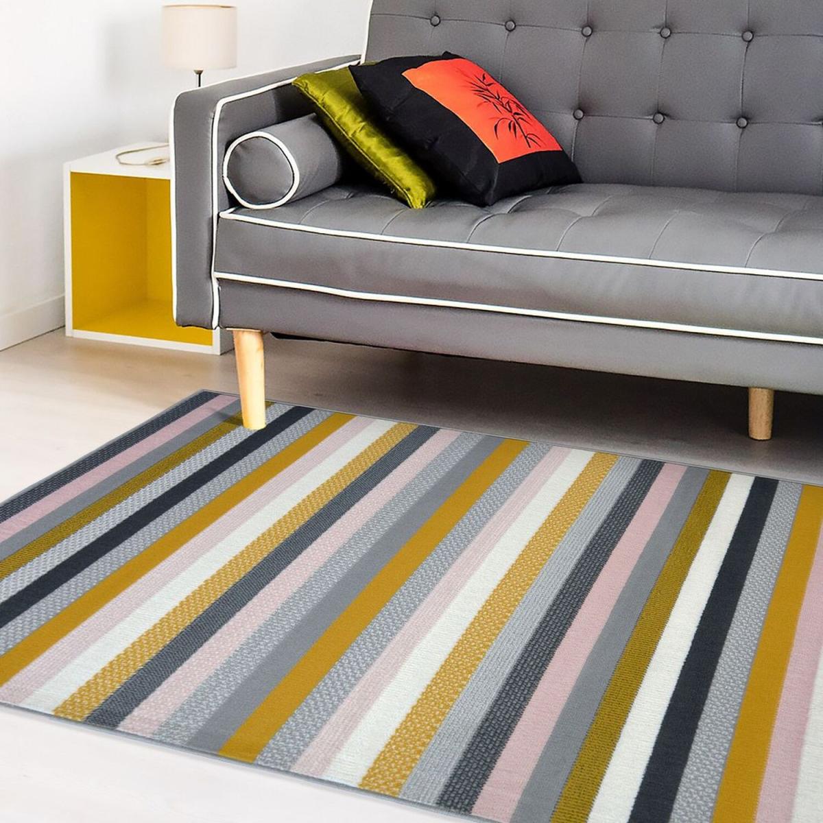 I love this rug because of its vibrant yellow and pink stripes which instantly lift a room’s colour palette and add a playful, modern touch. It works particularly well in contemporary or eclectic interiors, where its bold pattern can act as a statement piece. It’s a versatile option for living rooms, bedrooms, or even home offices, especially when paired with neutral, understated furniture to let the rug really stand out. For styling, consider introducing other coloured accents that pick up the hues in the stripe for a cohesive look, or keep it simple with tonal accessories to maintain a fresh and lively atmosphere. The size also makes it great for defining seating areas without overwhelming the space.