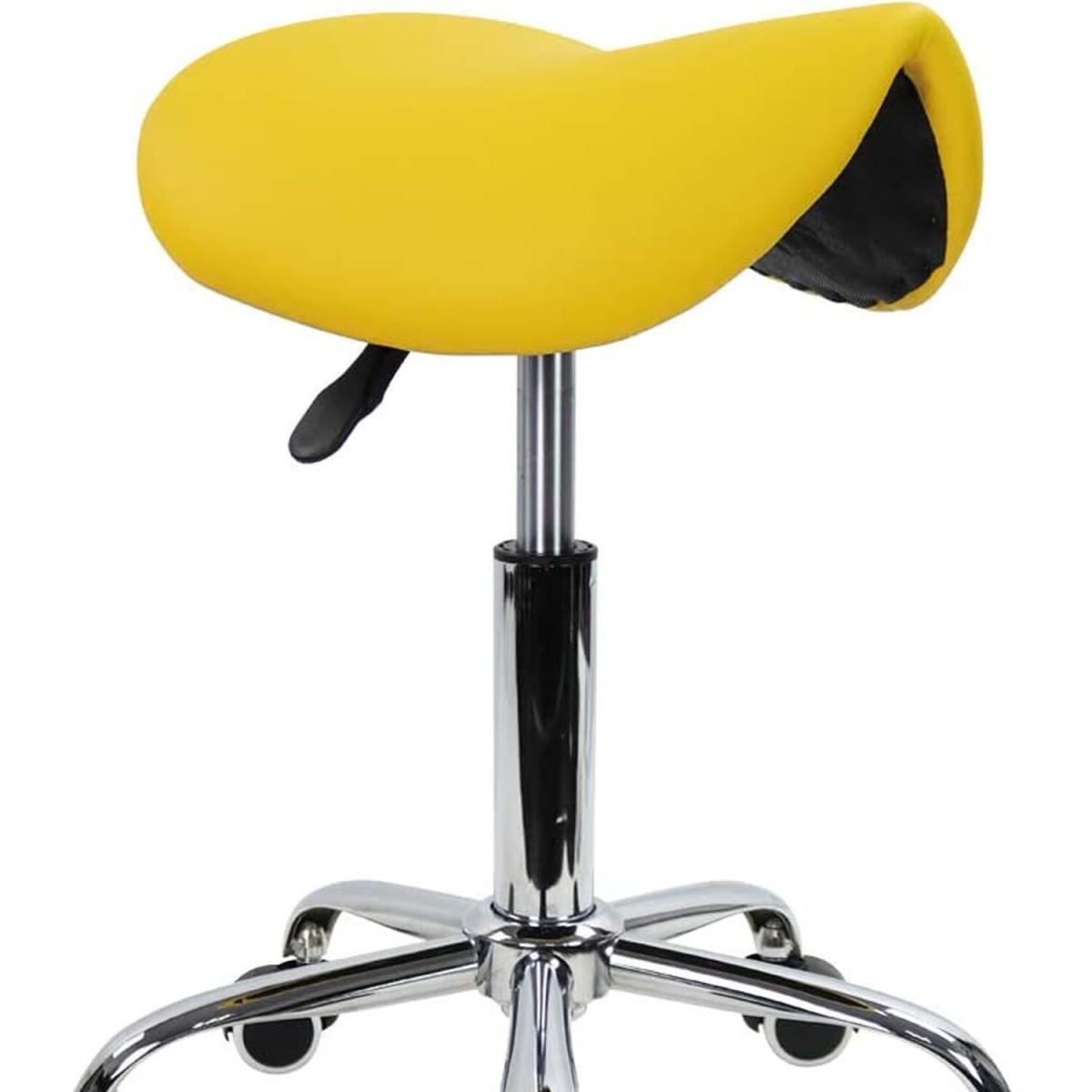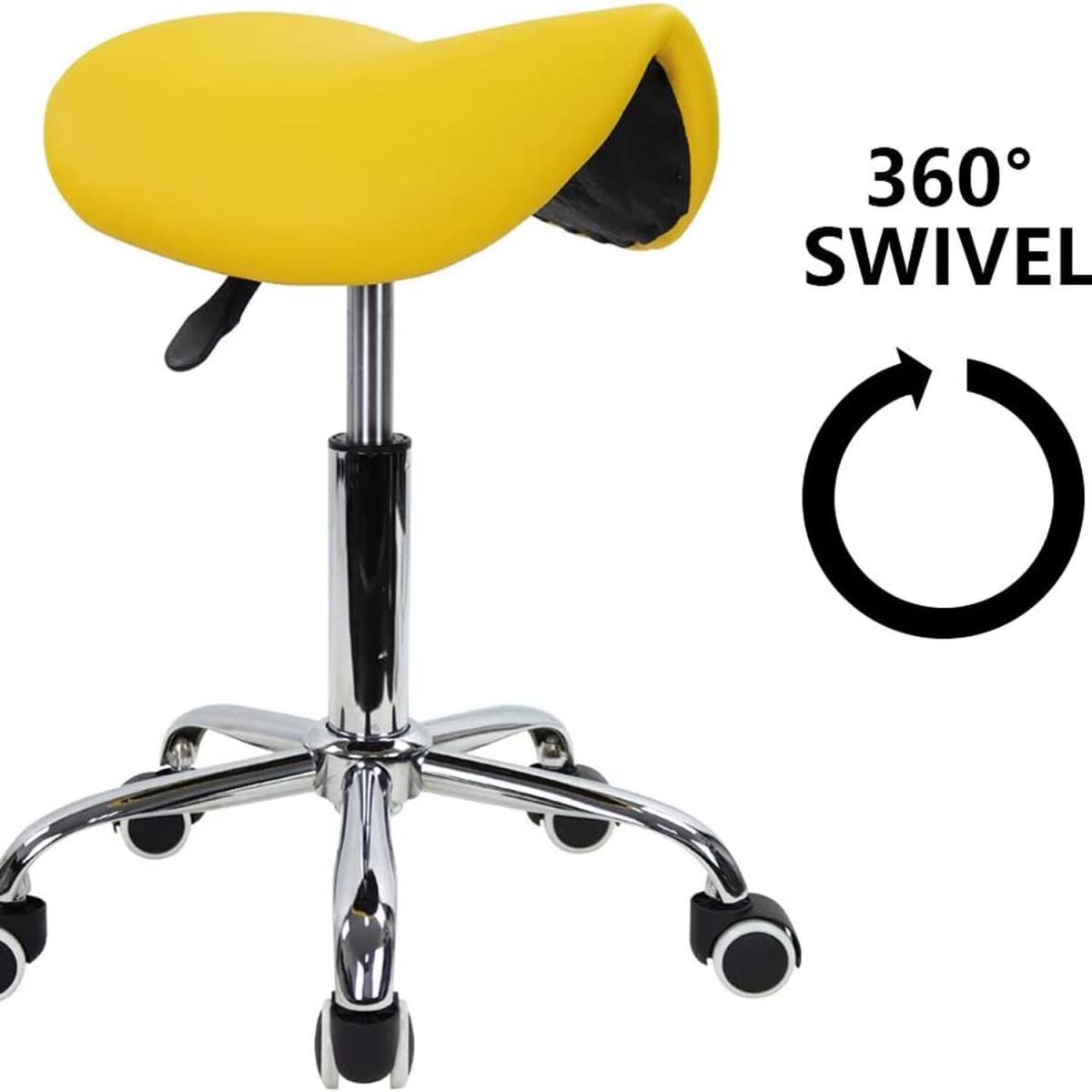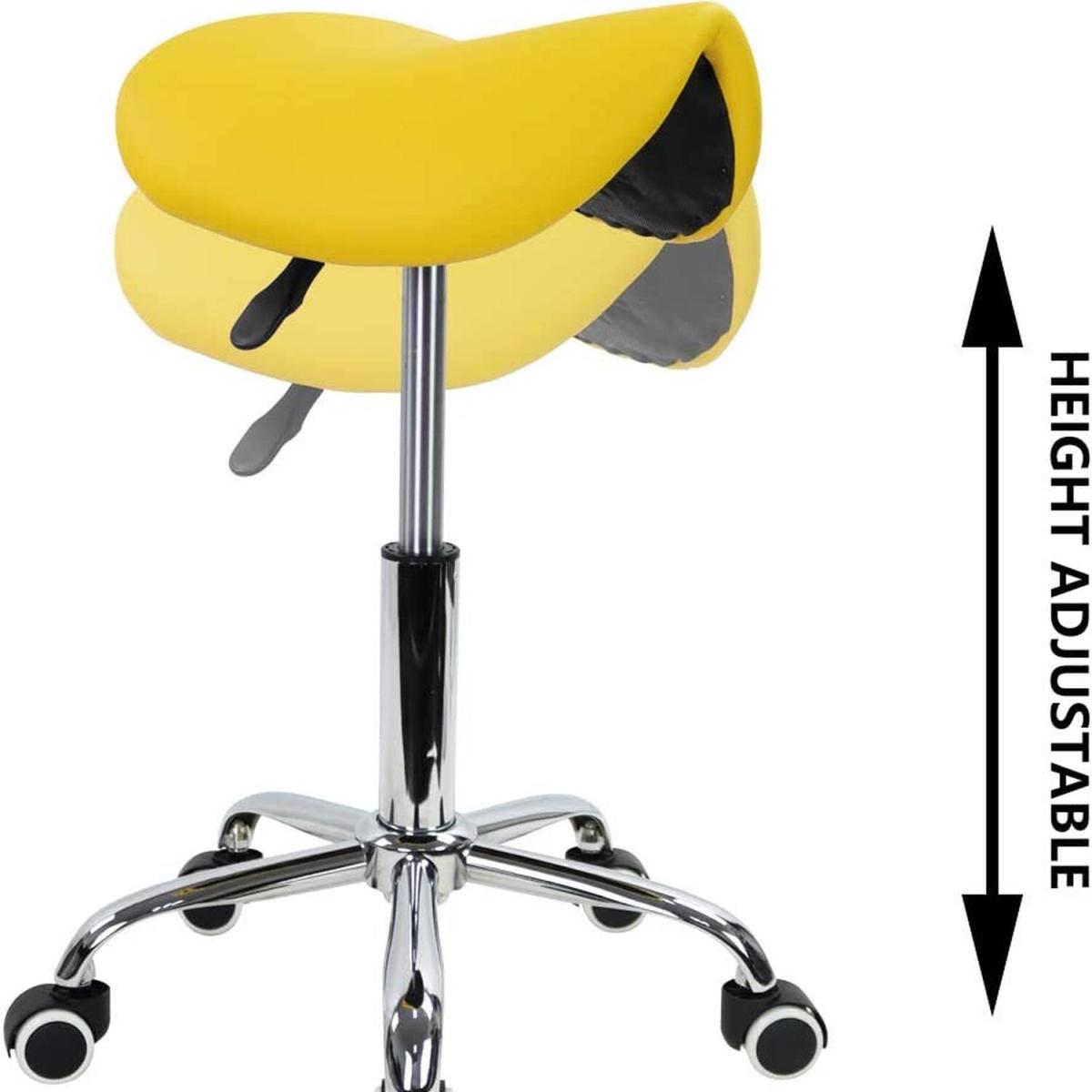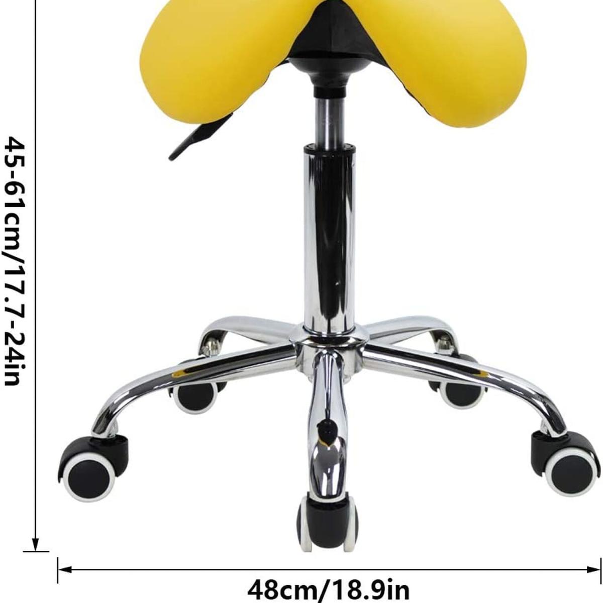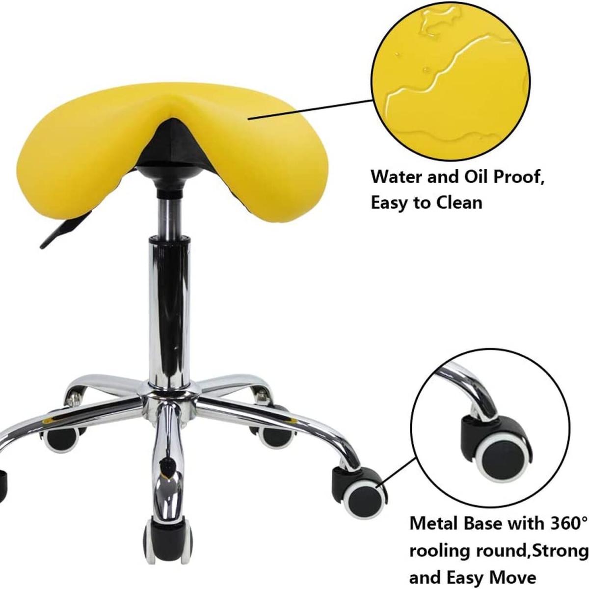 The steel base makes the stool strong and durable. Holds up to 135 kg. 360-degree rotation wheels provide move freely, suitable for kitchen, living room, clinic, living room, massage, salon, beauty etc. The seat cushion is slightly thicker than the traditional and sits comfortably. A handle easy to adjust the degrees of elevation to meet the needs of different occasions. The cushion is wrapped in PU leather, waterproof and easy to clean.360 Degree Rotation Wheels. The wheels rotate 360 degrees. Nylon feet, easy to move and noise-free, protect the floor from scratches. The saddle cushion is made of PU leather, which is very comfortable and elastic.