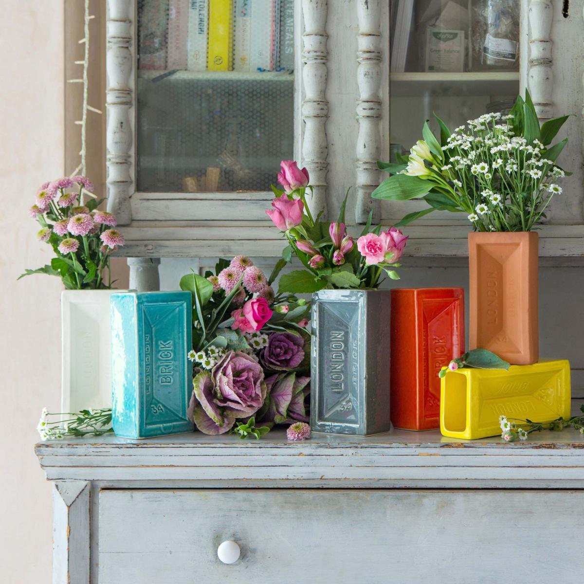 Handcrafted from glazed ceramic earthenware, these unique brick vases exude urban style. Place on a tabletop and fill with an assortment of seasonal blooms for a burst of colour. H20 x W9. 5 x D6cm. Ceramic earthenware. Capacity: 525ml. Dishwasher safe. Food safe. Water-tight. Due to the handmade nature of this product, size may vary. Please note, the terracotta brick vase does not have a glazed finish. Sold individually.