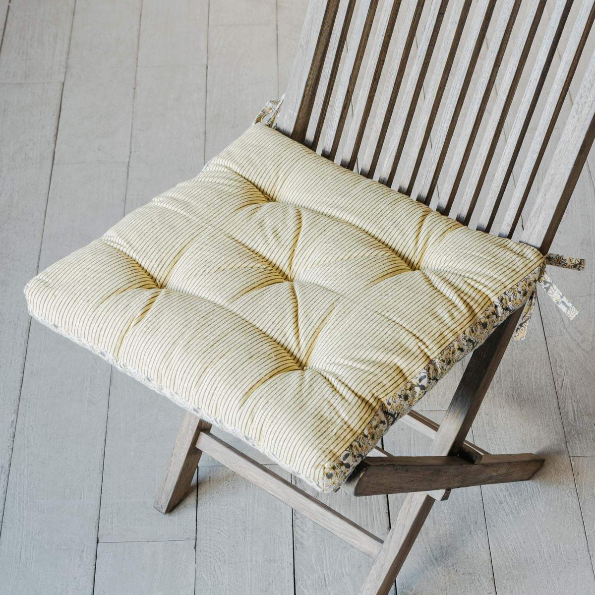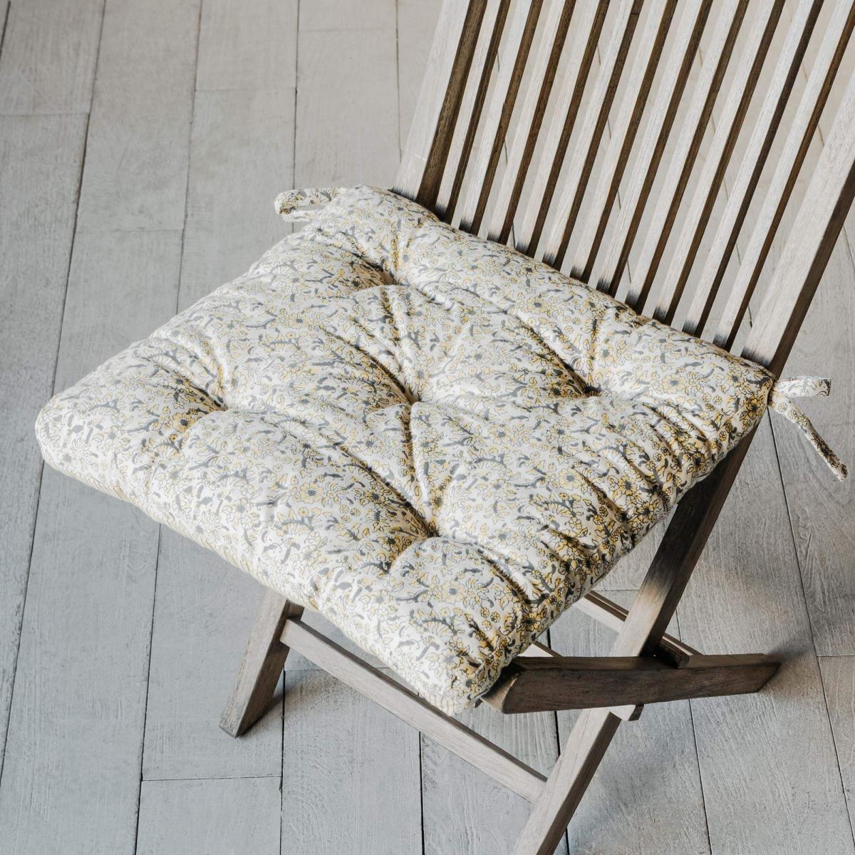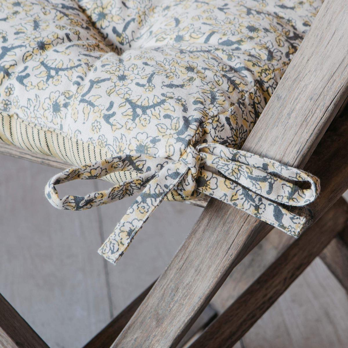 A delicate, ditsy floral design of yellow flowers covers this cream seat pad perfect for your own countryside cottage.