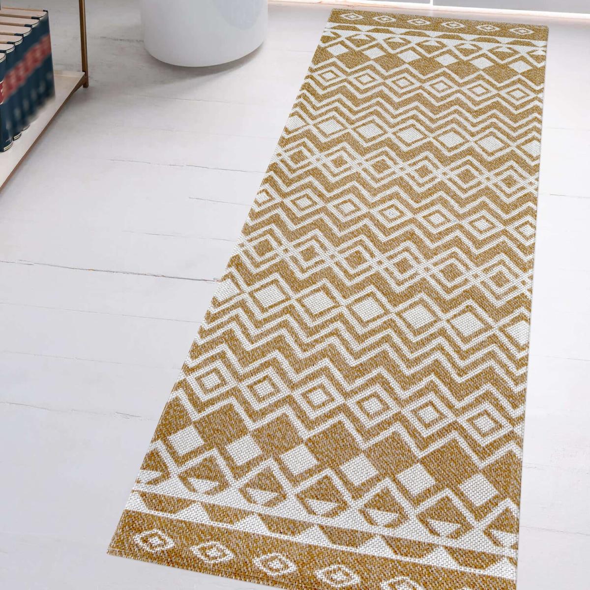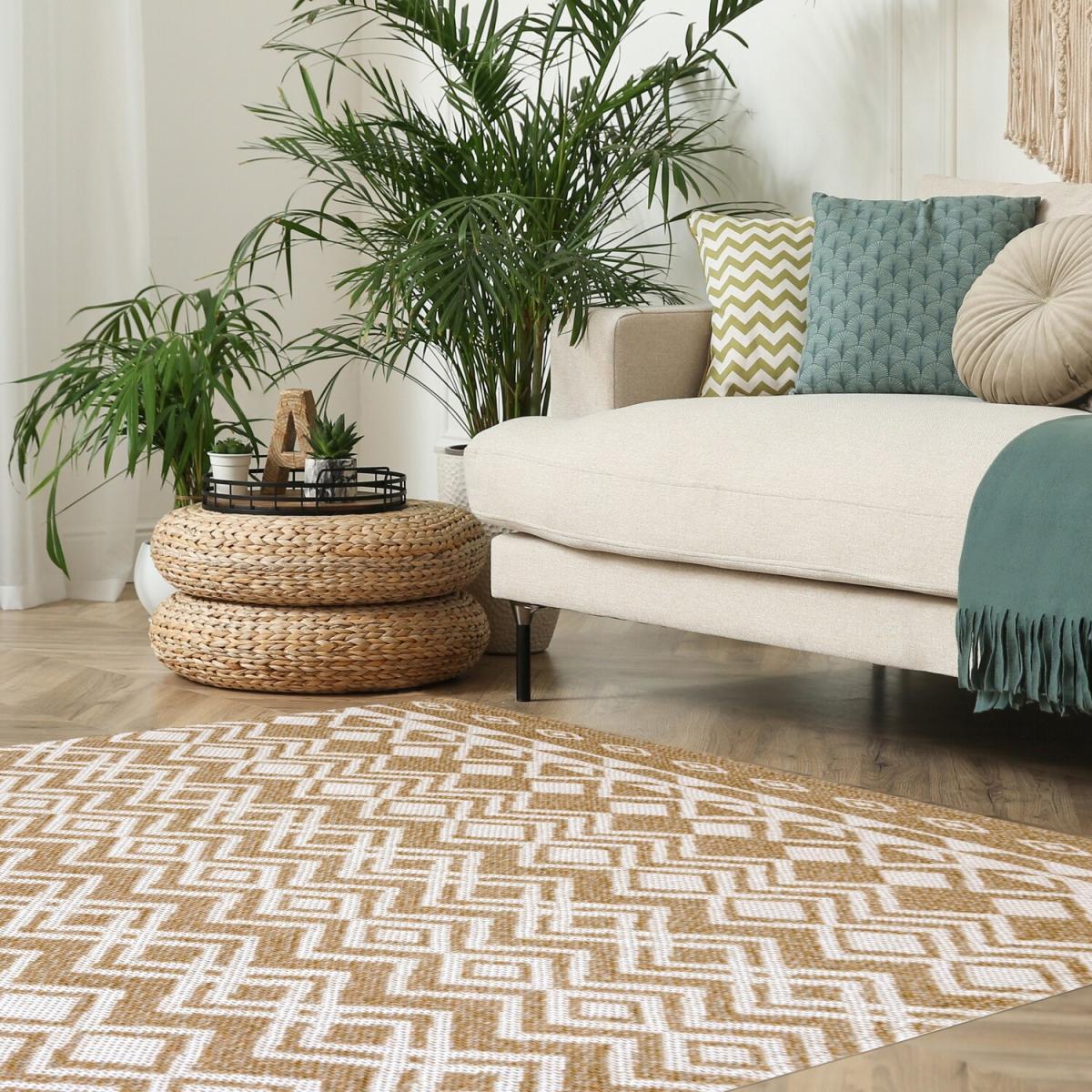 This yellow geometric rug is a fantastic addition for adding a pop of colour and visual interest to a variety of interiors. It works particularly well in modern and Scandinavian-inspired living rooms, where its eco-friendly edge complements natural textures and minimalist aesthetics. The vibrant yellow colour brings warmth and brightness, making it ideal for rooms with neutral or subdued colour schemes. For styling tips, try layering it over wooden or pastel-toned flooring and pairing it with simple, contemporary furniture to let the pattern and colour stand out. It’s also versatile enough to work in casual family spaces or more polished sitting areas, adding both comfort and a touch of lively character.