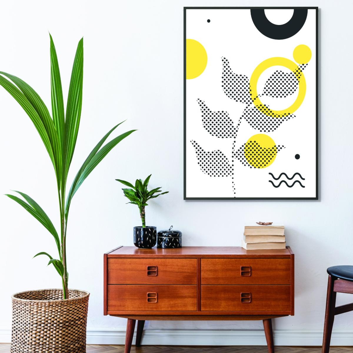 I love this bright, playful print for injecting colour and energy into a space. The bold yellow and orange hues combined with abstract shapes make it versatile-perfect for modern, minimal, or even eclectic interiors. It works particularly well in living rooms, home offices, or kitchens where a pop of colour can serve as a visual focal point. Style tips include pairing it with neutral furnishings to let the artwork stand out, or layering with other contemporary accessories in similar tones for a cohesive look. It’s also great in smaller spaces, as its large scale can make a striking impression without overwhelming the room.