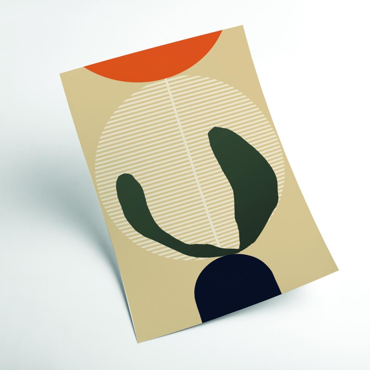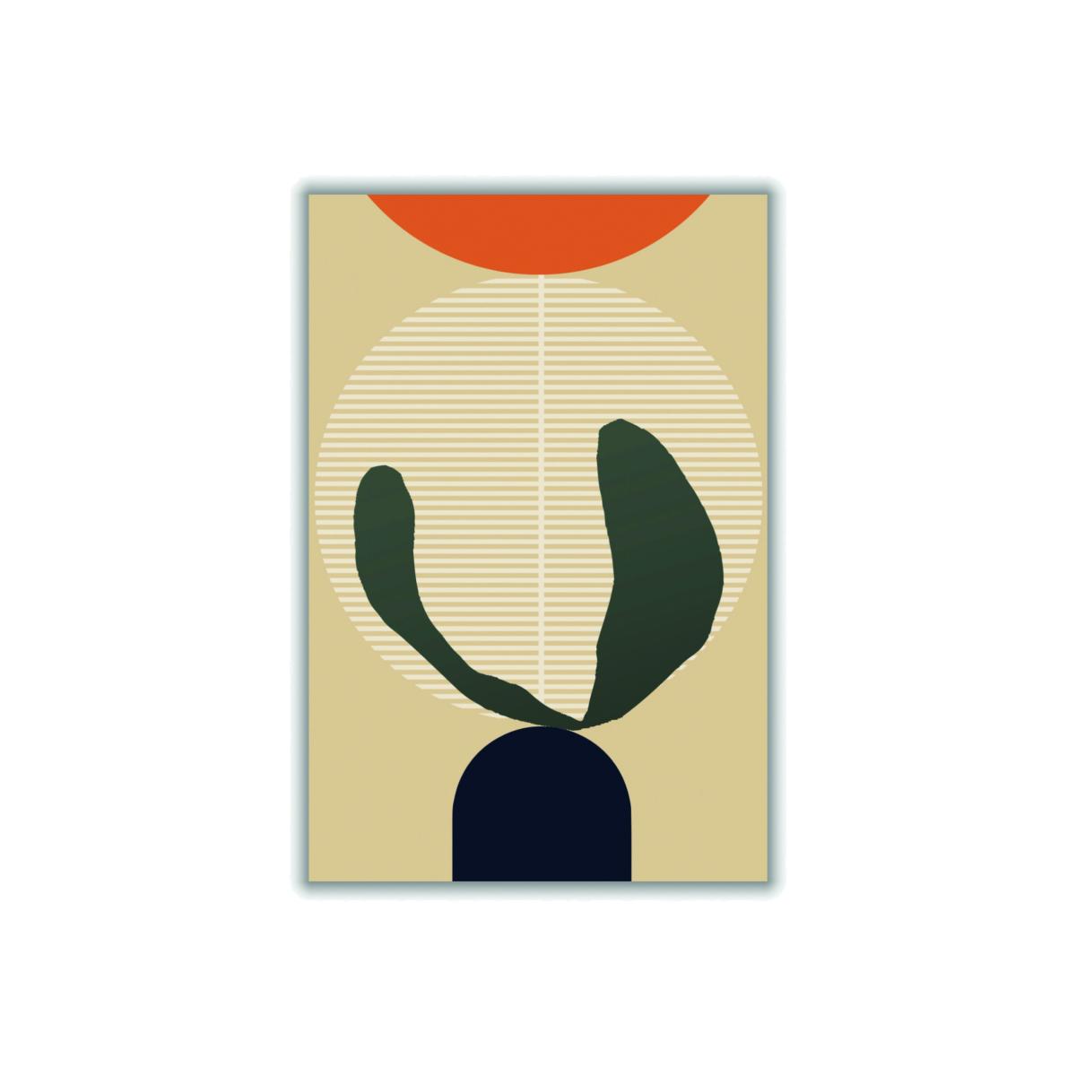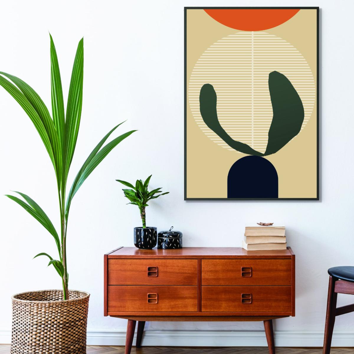 I love this bold abstract print for its striking use of colour and modern aesthetic. It works particularly well in contemporary or minimalist interiors, offering a splash of vibrancy without overwhelming the space. The warm yellows and oranges combined with the deep green add visual interest and warmth. For styling, try pairing it with neutral-toned furnishings to let the artwork stand out or complement it with accent cushions or accessories in similar colours for a cohesive look. It’s especially effective in living rooms or bedrooms where you want a focal point that’s both energetic and stylish.