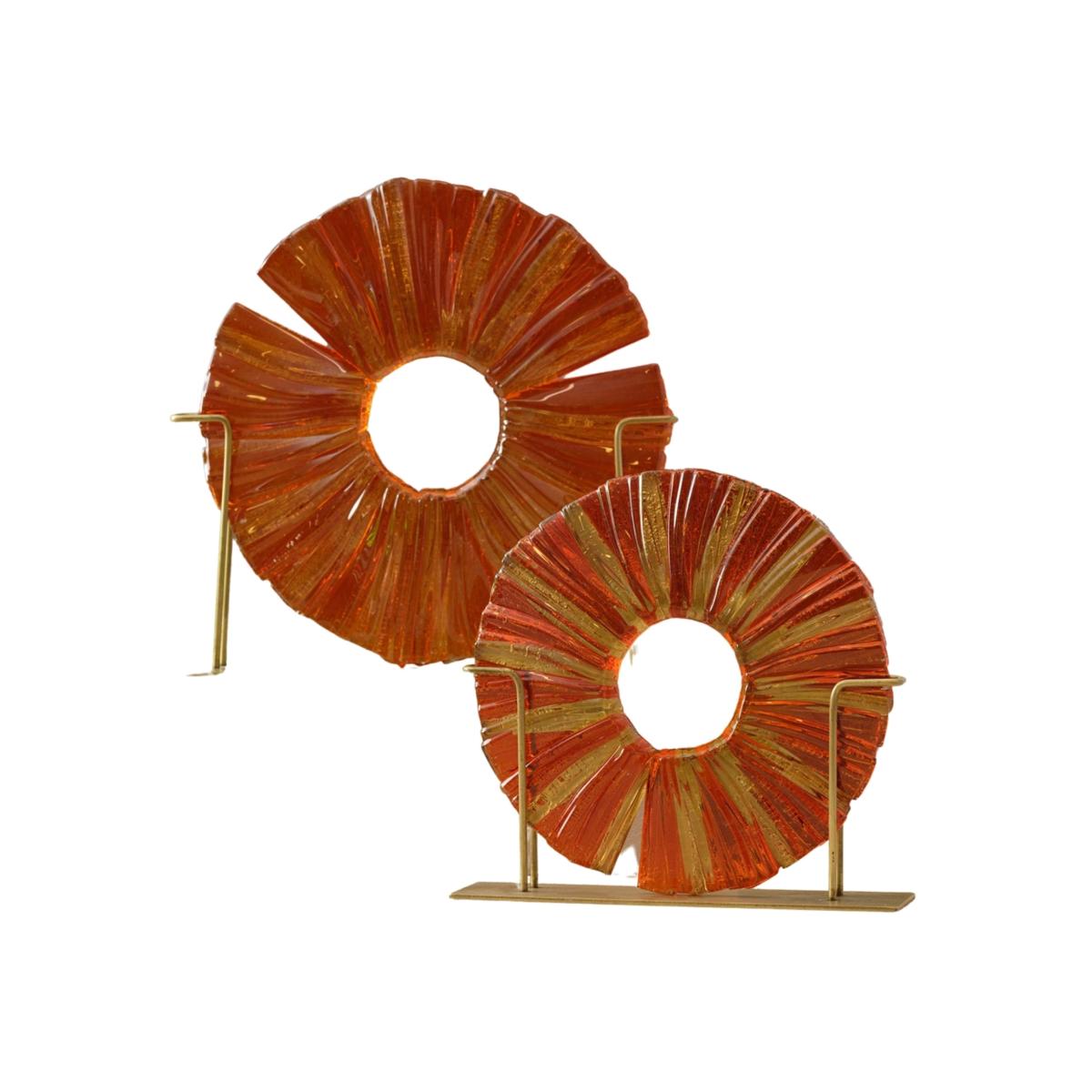 Transform your living space with the Amber Glass Decorative Disc Set, a luxurious blend of craftsmanship and design. Featuring radiant amber glass enriched with intricate gold accents, this decorative duo adds a warm and inviting glow to any room. Each piece is thoughtfully mounted on a sleek, brass-toned metal stand, providing both stability and an understated touch of elegance. Ideal for display on coffee tables, shelves, or console tables, these handcrafted discs create a stunning focal point, whether in modern or classic interiors.