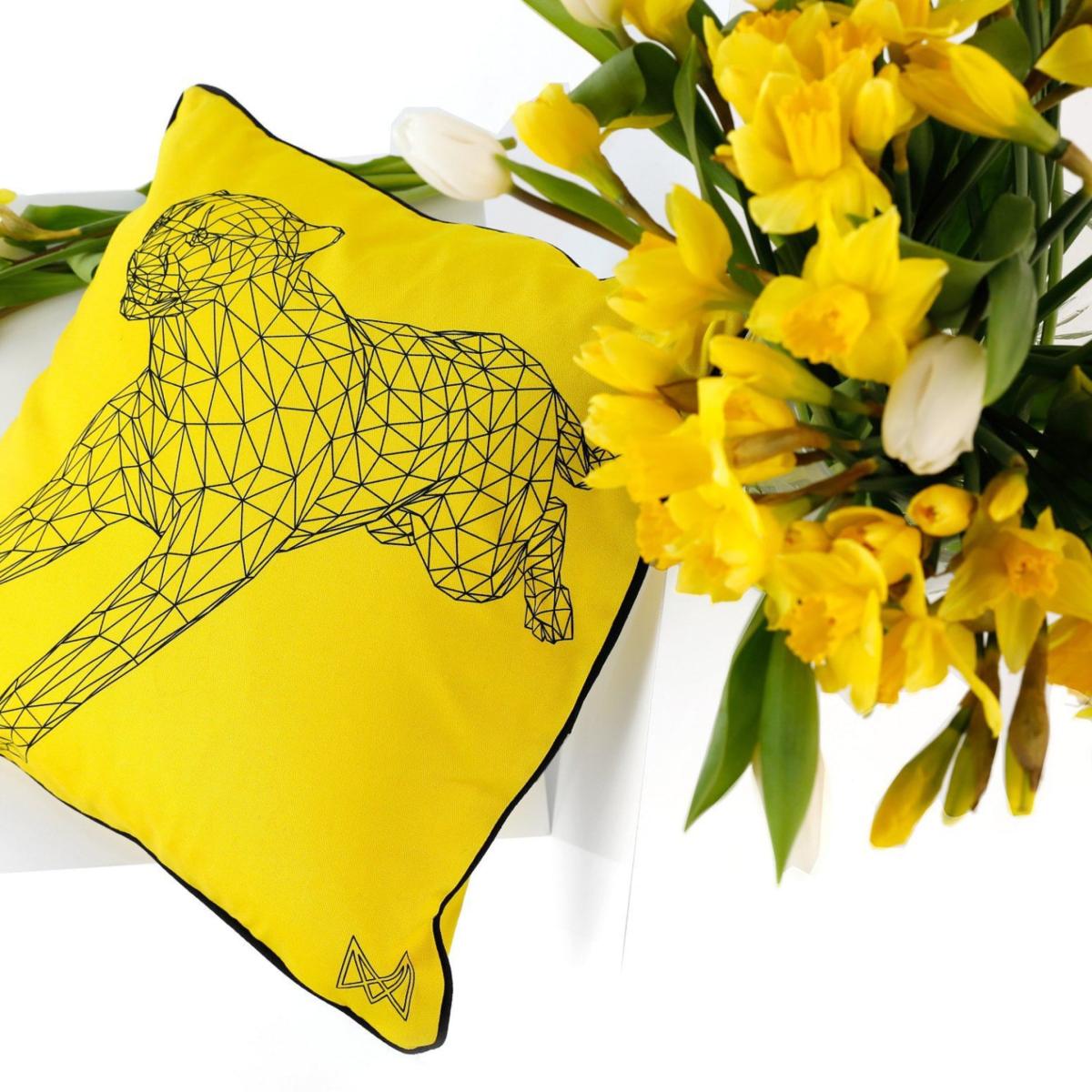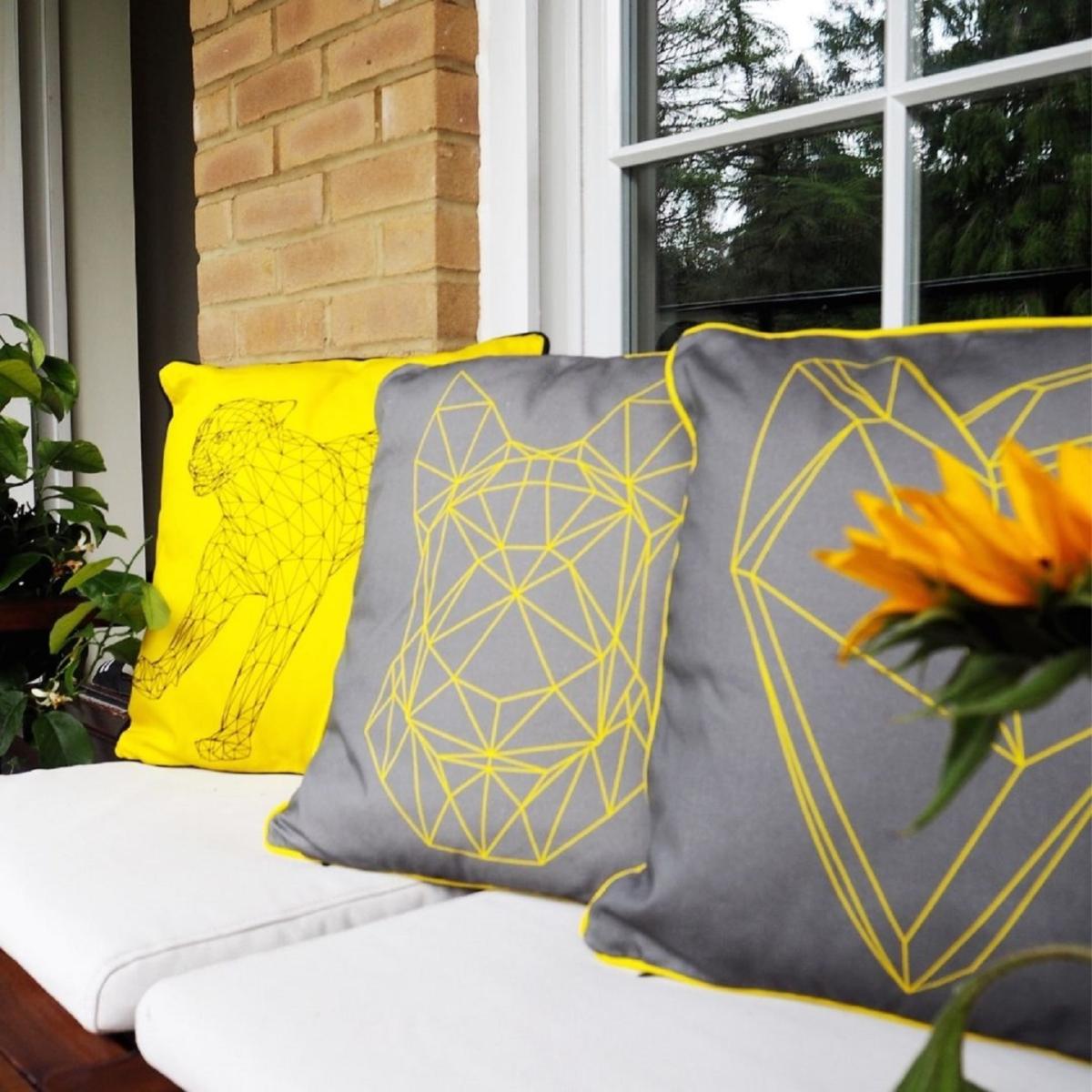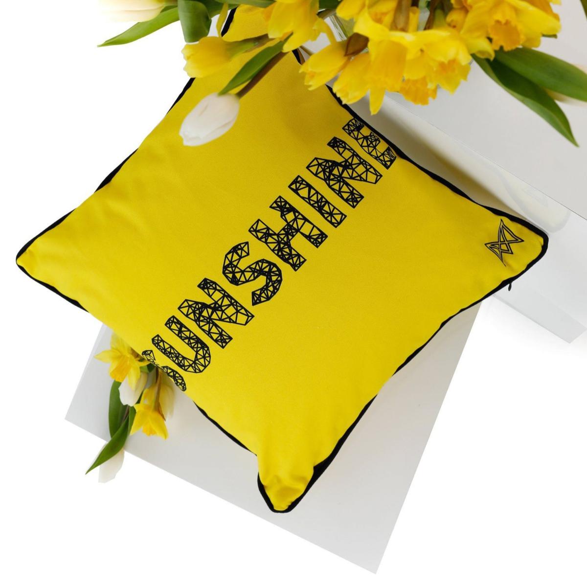 Organic cotton with two designs one each side to match your mood. The inner cushion is made from 100% recycled drinks bottles so eco-friendly too. One side features our Geometric cheetah design while the other has the word Sunshine. Key Features : Made from Organic Cotton (GOTS certified)with two Marokka own designs one on each side Coordinating Piping round edges Handmade in the UK