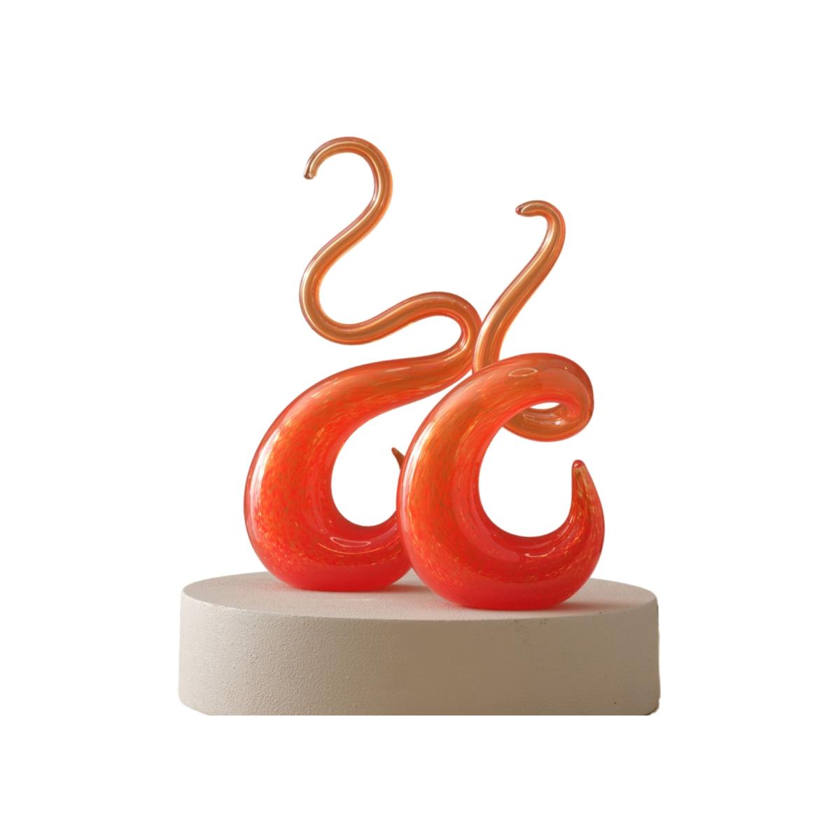 Bring a touch of modern artistry to your home with this hand-blown glass sculpture duo, available in a stunning array of colors. Each set features two elegantly intertwined forms that mimic the graceful movement of ocean waves or flowing tendrils. Expertly crafted by skilled artisans, these abstract sculptures showcase the fluidity and beauty of glasswork, making them perfect for adding a dynamic focal point to any shelf, table, or mantel. The colors range from a cool, tranquil white to bold coral and vibrant blue, allowing you to choose the shade that best complements your space.