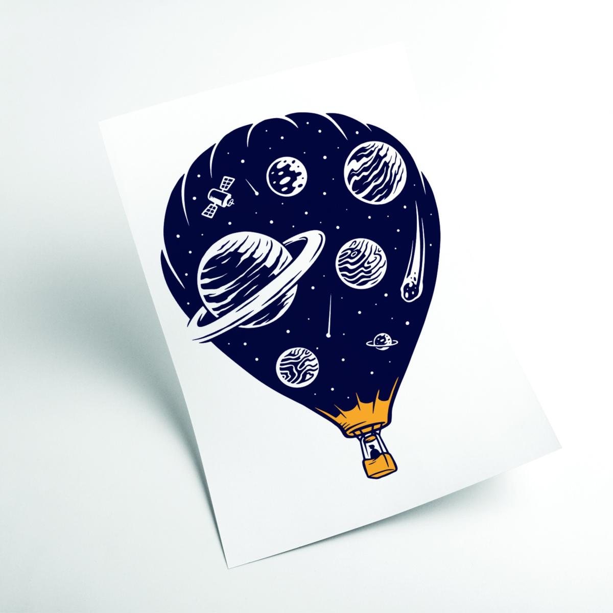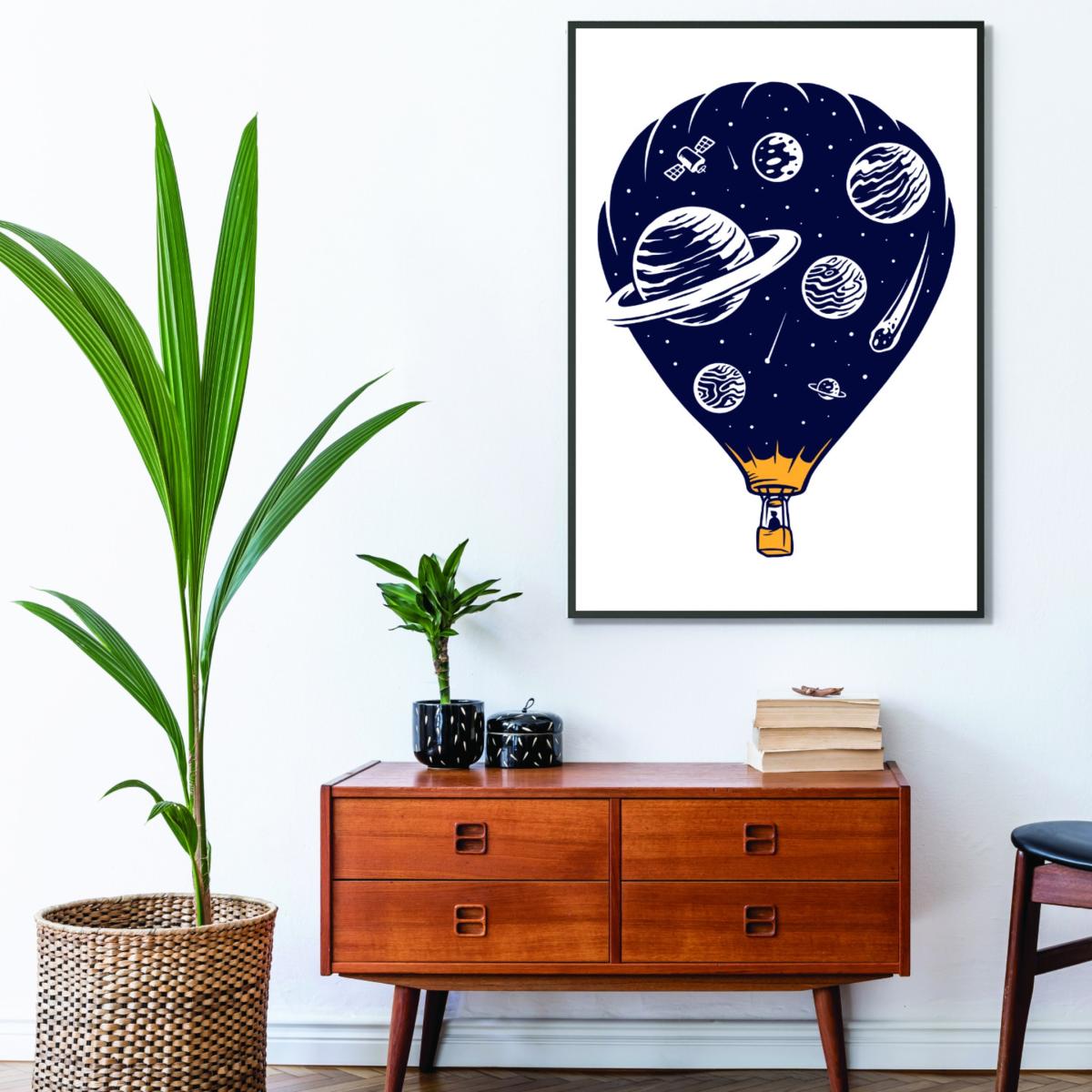 I love this hot air balloon universe print because of its bold, playful colour palette and imaginative design, which can bring a sense of fun and curiosity to any room. It works especially well in modern or eclectic interiors, where its vibrant oranges and yellows can act as a colourful focal point. For practical styling, consider pairing it with neutral walls or minimalist furniture to let the artwork really stand out. It also pairs nicely with other space or travel-themed accessories, and is versatile enough for living rooms, kids’ rooms, or creative spaces. Hanging it at eye level in a prominent spot will maximise its visual impact and add a whimsical touch to your decor.