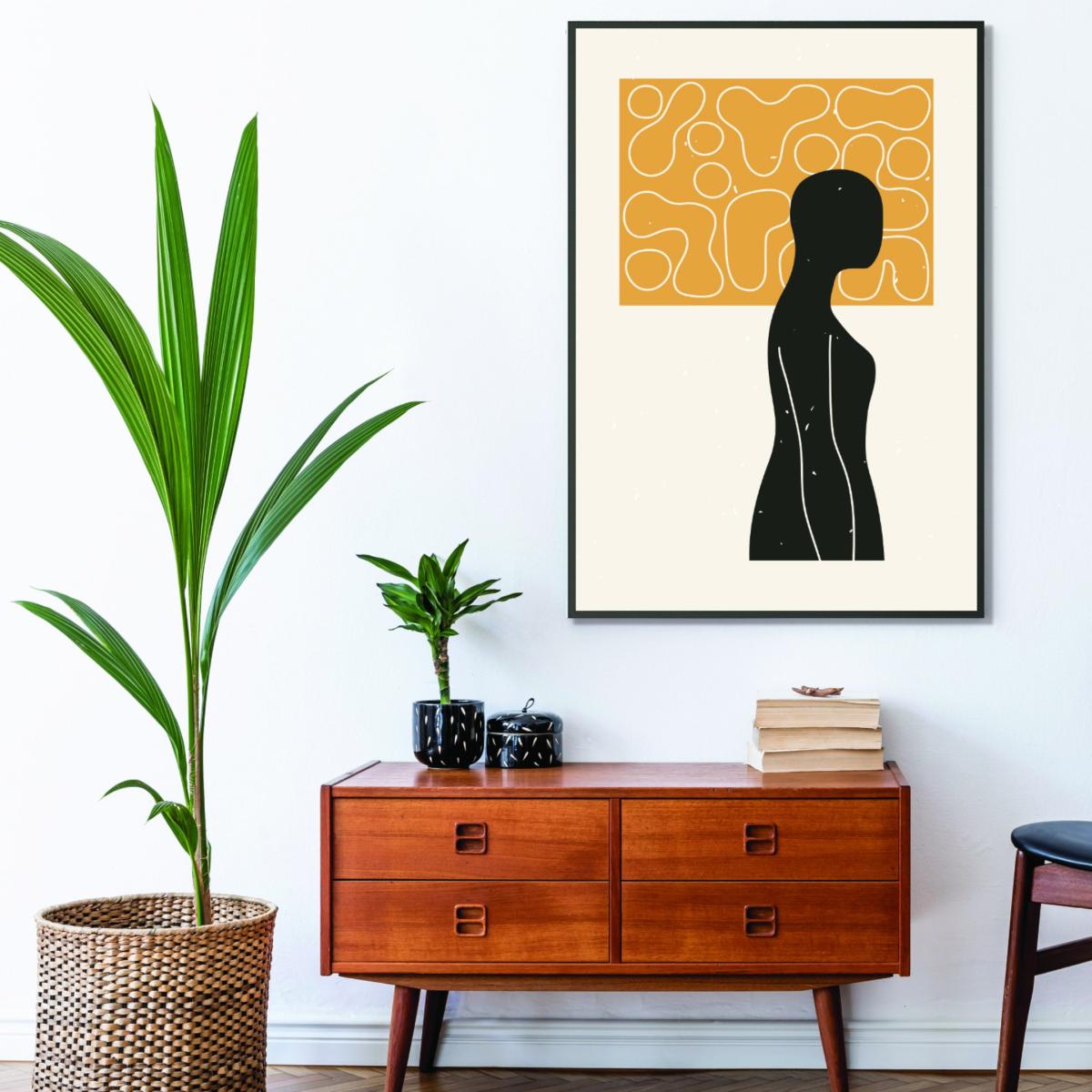 I love this piece because of its bold simplicity and vibrant colour palette. The yellow and orange hues bring warmth and energy, making it a great statement piece in a living room or bedroom. It works particularly well in modern or minimalist interiors, where clean lines and understated furnishings allow the artwork to stand out. For styling tips, consider pairing it with neutral or muted furniture to let the colours pop, or hang it above a white sofa or bed for a fresh, contemporary look. Its sizeable scale makes it perfect for large walls, ensuring it becomes a focal point that anchors the space effectively.