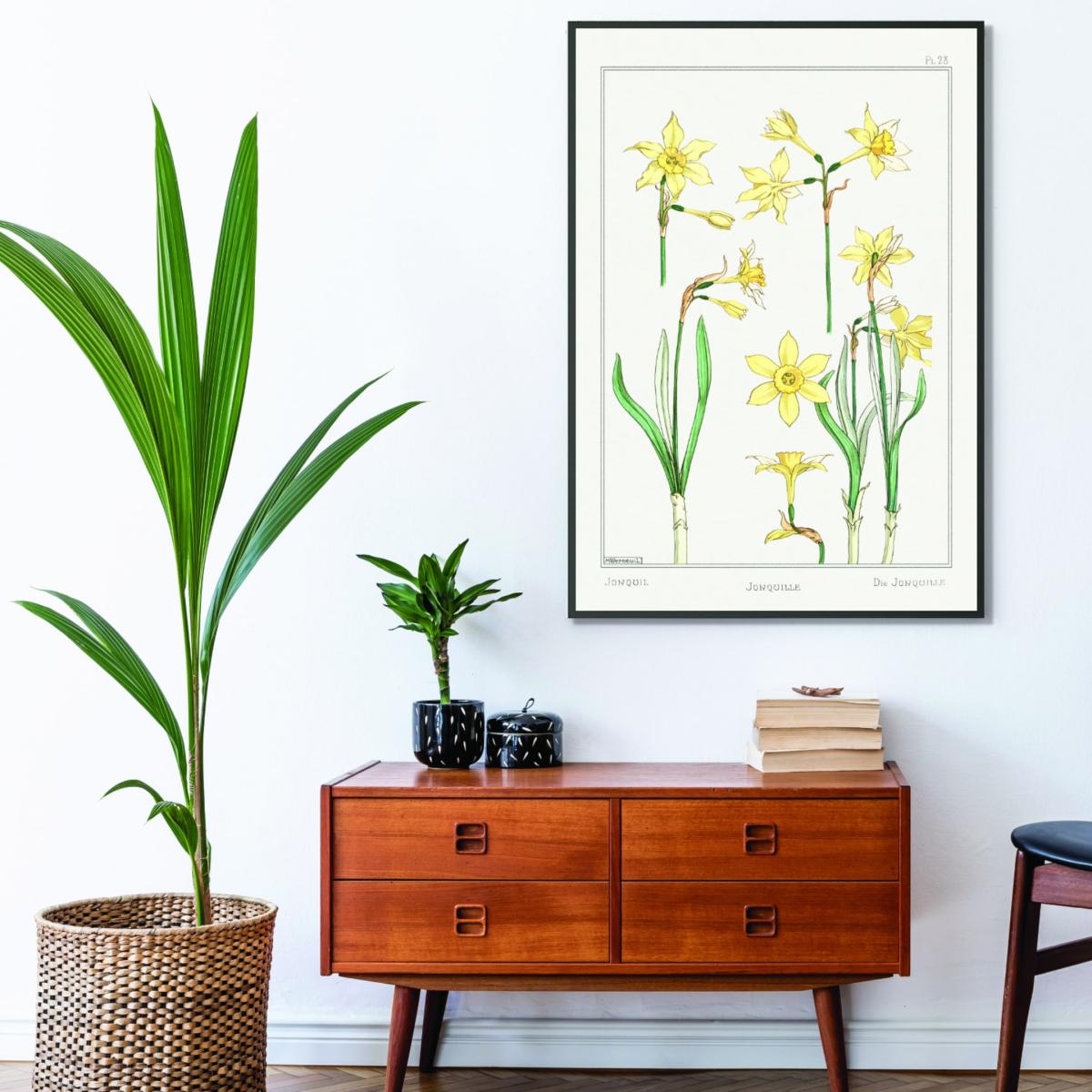 This yellow and orange jonquille print is a vibrant, vintage-inspired piece that works beautifully in both modern and traditional interiors. I love it because of its fresh, lively colour palette and botanical illustration style, which adds a touch of natural charm without feeling overly decorative. It pairs well with neutral backgrounds to inject colour and can act as a focal point in living rooms, kitchens, or bedrooms. Practical styling tips include framing it with a simple border to enhance its clean lines and placing it alongside muted accessories or furniture to allow the print to stand out. It’s a versatile artwork that can brighten up a space and create an inviting, botanical vibe.