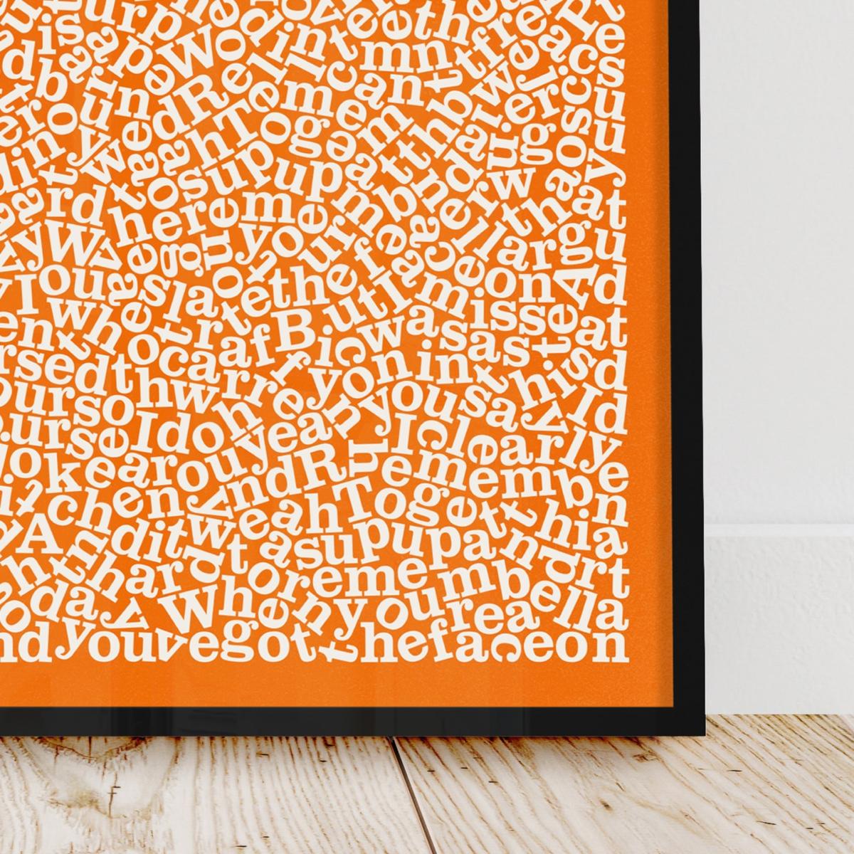 ▶ Posters that literally ‘contain’ the lyrics of your favourite songs, Genius! Designed in a modernist, understated style that compliment any interior, our posters capture the lyrics that mean the most to you. ▶ Give the gift of music. These minimalist typography prints are the perfect gift for music lovers. Take a look at our other listings for more songs. ▶ Designed and produced in England, Sold without a frame. Available in a range of sizes.