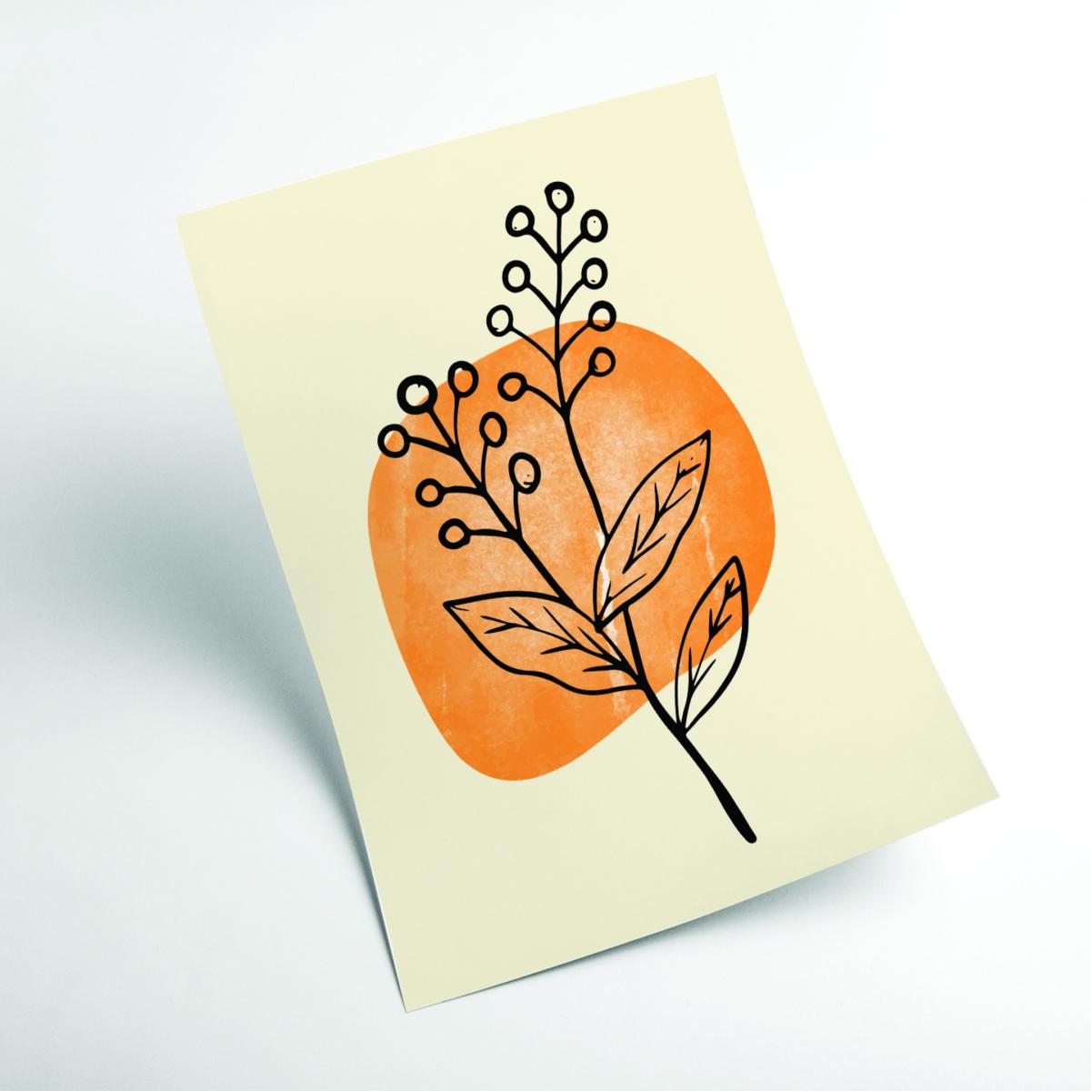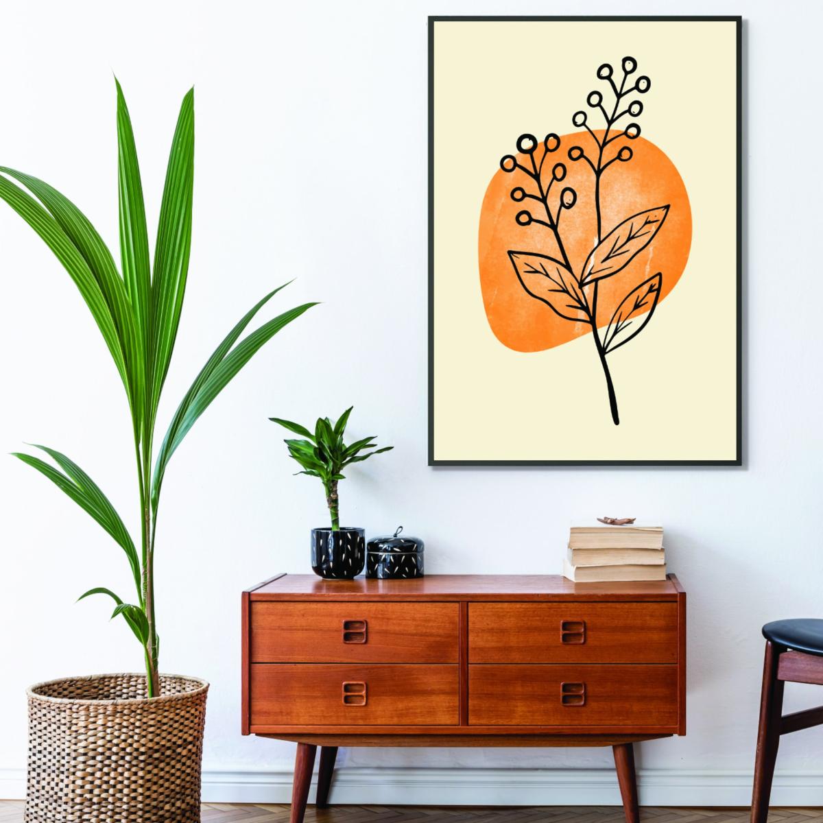 This piece is a great example of modern simplicity, making it very versatile in a range of interiors. The minimal floral design combined with warm yellow and orange tones brings a subtle burst of colour without overwhelming a space. It works particularly well in contemporary or Scandinavian-styled rooms, added above a neutral sofa or paired with natural textiles for a cohesive look. For practical styling, consider framing it in a matte black or white frame to keep the focus on the artwork, and hang it at eye level to maximise impact. It’s ideal for creating a calm, inviting atmosphere in living areas, bedrooms, or even home offices where clean, understated art can boost visual interest without clutter.