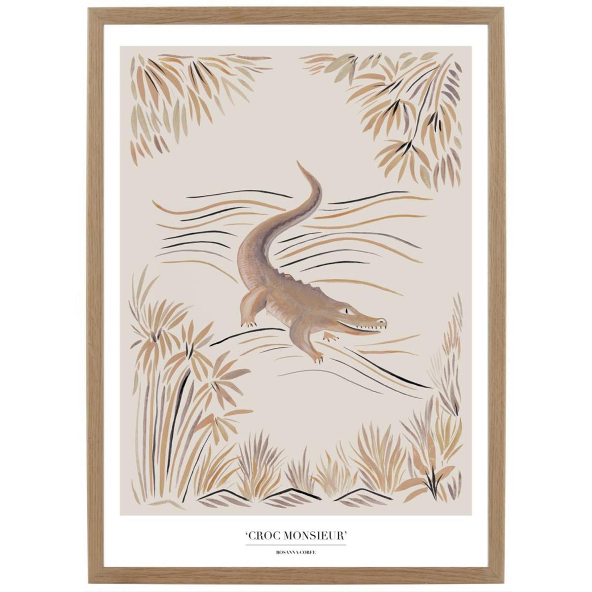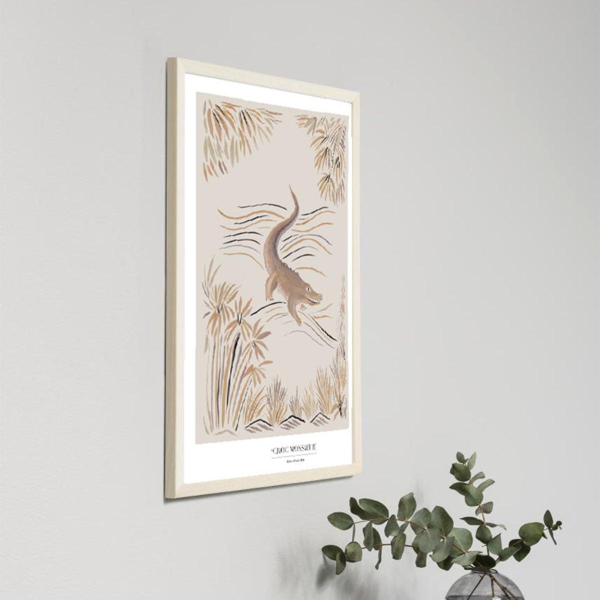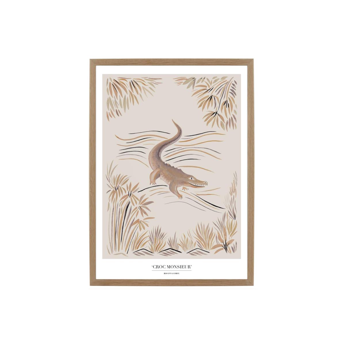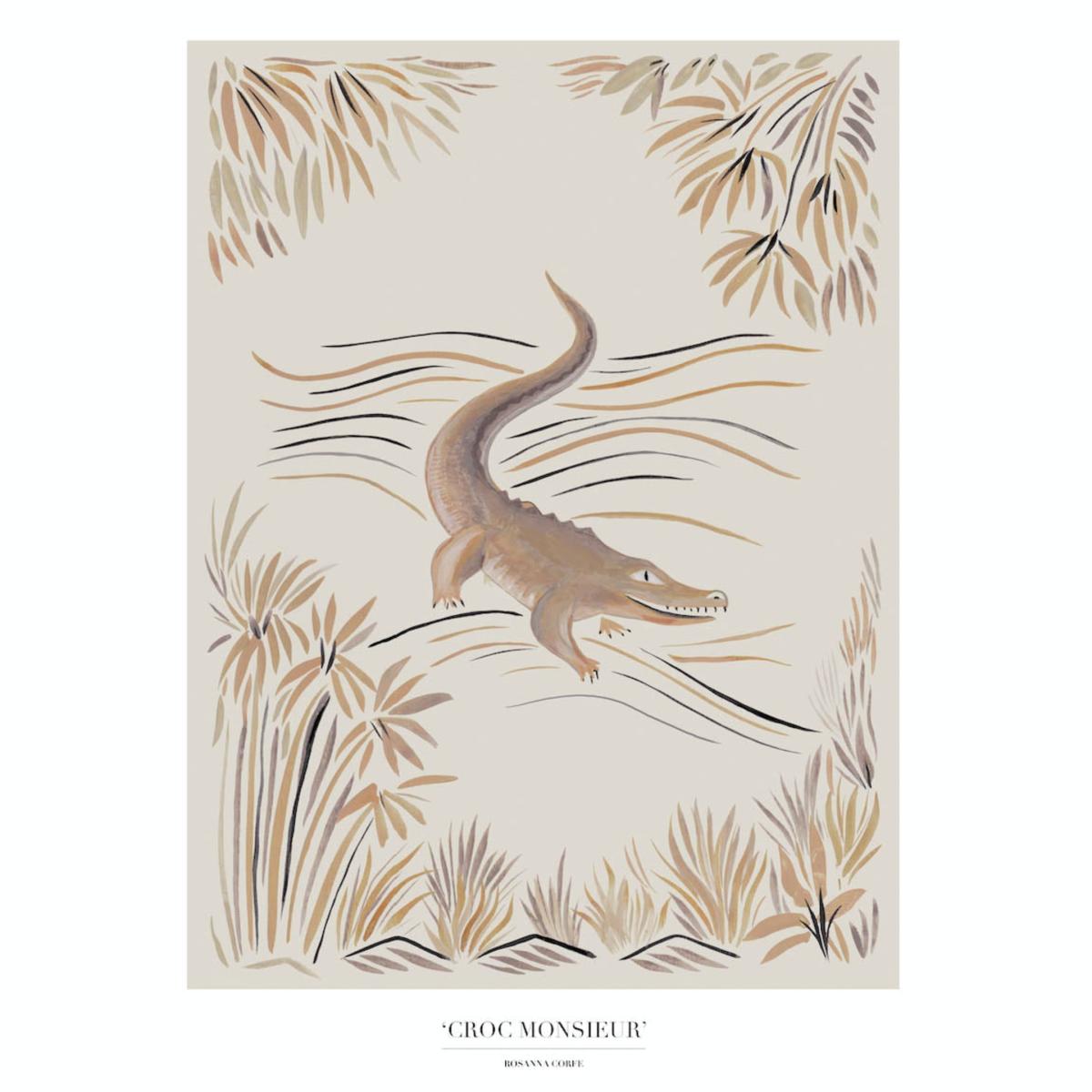 The playful Croc Monsieur fine art print was originally painted by Rosanna Corfe in ink and gouache and this wall print wonderfully replicates the delicate details and textures of the original artwork. Featuring a fun and playful crocodile drawing in a beautiful subtle beige colour palette, this artwork is both contemporary and timeless and will be a statement piece in your interiors. - Paper size A4 - Printed in the UK onto Matt Heavy 300gsm Recycled paper - Supplied unframed