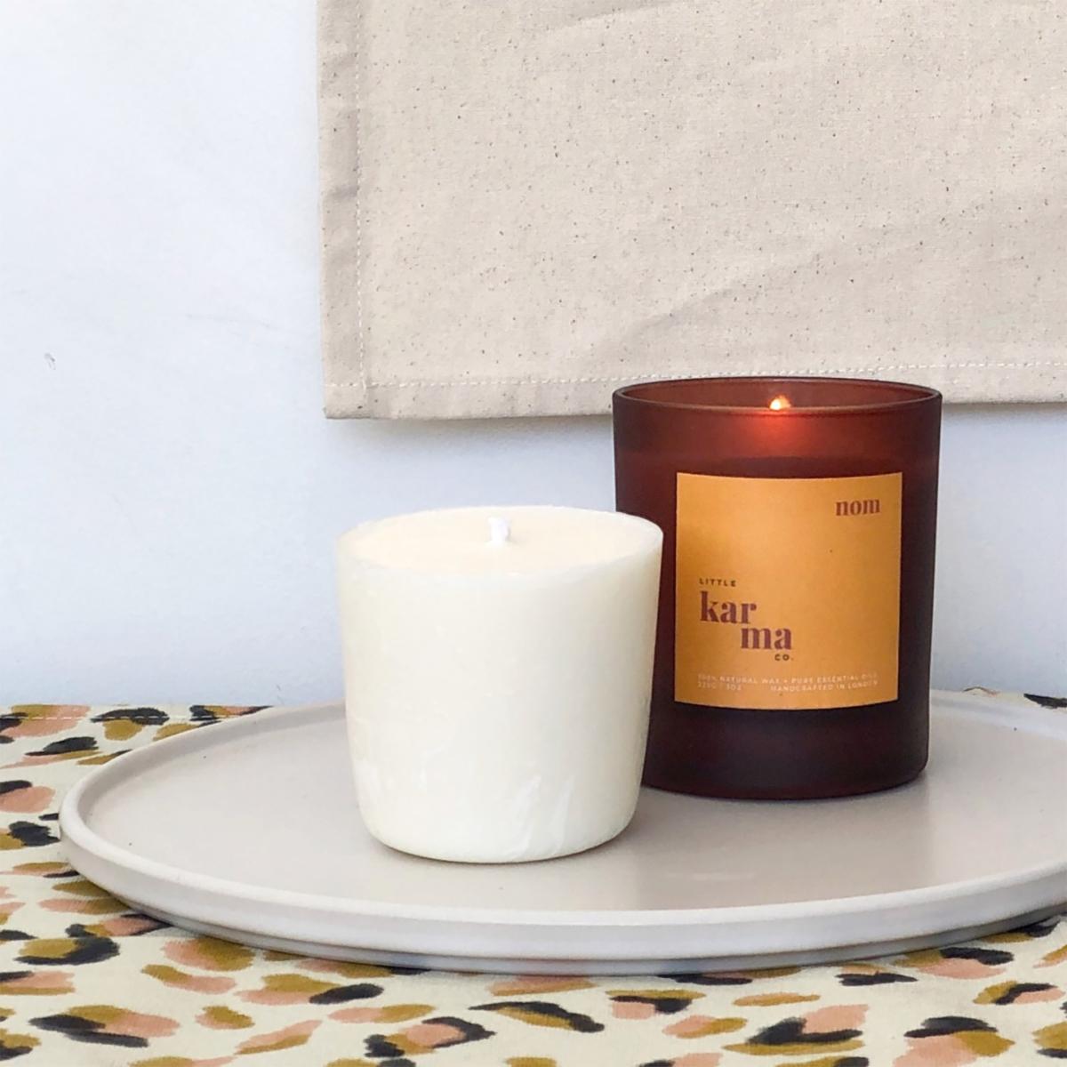 Indulge in the spa-like feeling of this uplifting natural candle. Lemongrass enlivens the senses, and works perfectly with the warming and powerful scent of ginger. Lime revives the mind while coriander aids relaxation. Sensual patchouli grounds the blend to finish off this wonderfully balanced spicy yet fresh aroma. Handcrafted using 100% natural wax and pure essential oils, this candle is vegan, clean and contains no nasties.