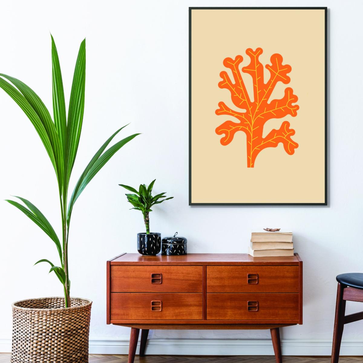 I really like this yellow and orange seaweed print; it brings a vibrant, natural touch to any space. It works particularly well in contemporary or coastal interiors, where it can add a splash of colour without overpowering the overall palette. For styling, consider placing it in a room with neutral tones to let the artwork stand out or alongside marine-inspired accessories for a cohesive look. Practical tips include pairing it with simple frames, or even letting it hang in a cluster with other smaller prints to create an interesting gallery wall. Its lively hues make it versatile for living rooms, bedrooms, or even bathrooms where a splash of seaside-inspired colour can lift the space.