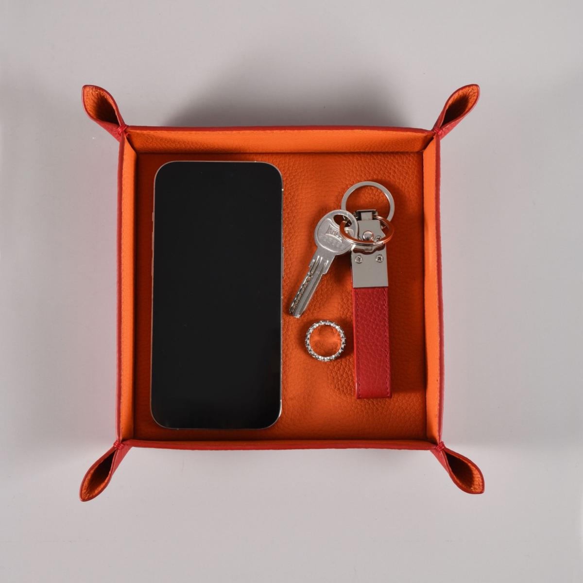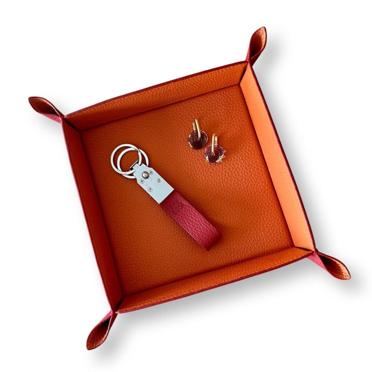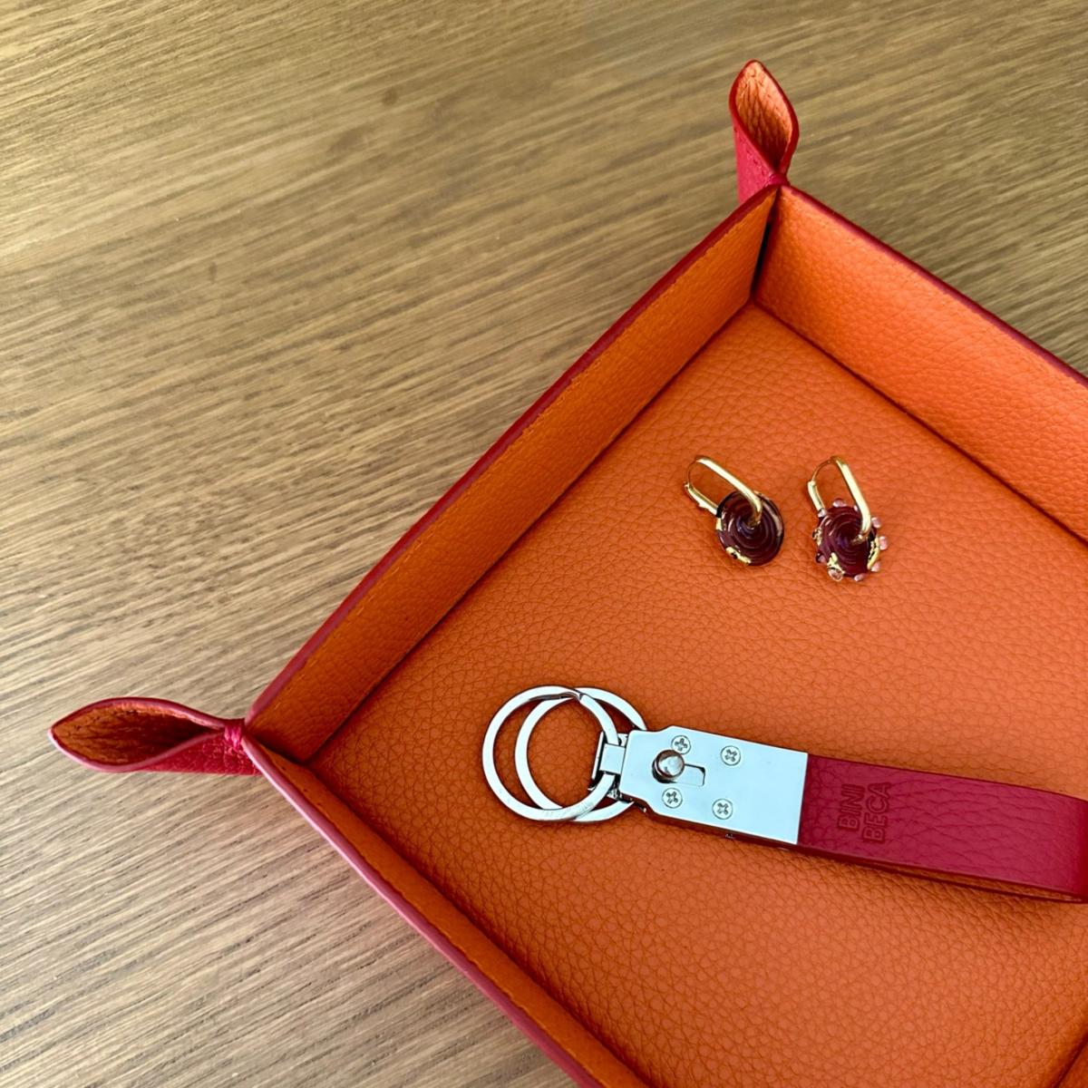 Our very first and most functional Bini Beca leather item is a must have for your home's entrance, your dressing room, your jewelry drawer or your bedside table. With this tray made with 100% original leather and extra layer of cushion inside, your jewelry, your watches, your phone and key holders will be protected from scratching and will stay together, helping you know where your daily items are. Poche-vide in French, this item is used for holding the contents of your pockets, or equally as a an object with which to decorate your home or your office desk. Making it an ideal present for homes and for offices, for both men and women. Hand crafted with 100% original leather