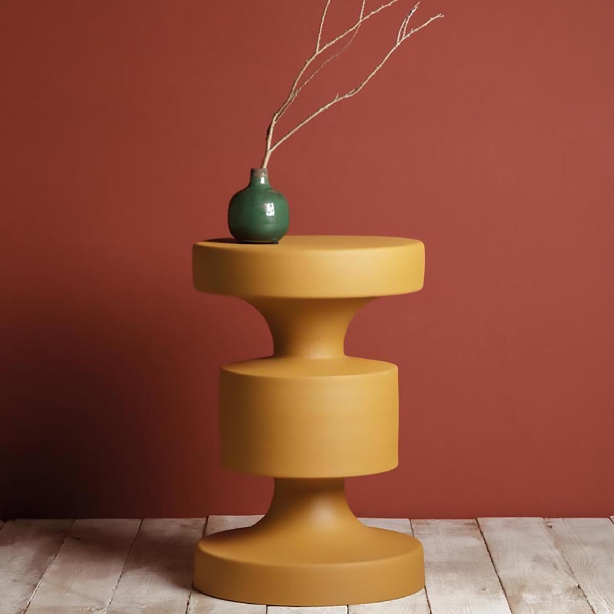 This ocher yellow side table or stool is a colorful statement in your home. Combine the side table with the green or coral red version. This design is an eye-catcher in your home! This is a piece of furniture with different purposes. Use it as a side table next to your chair or sofa. Put it down as a stool at the table. Or use this side table for a beautiful vase with flowers or art object. This table will also do well next to your bed. The table fits in quiet interiors with natural tones, as an eye-catcher. The side table also fits in a colorful interior for an extra color element. Immediately give your interior more color with this ocher yellow side table from Catchii.