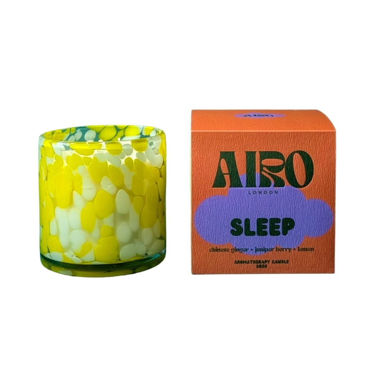 AIRO aromatherapy handmade sleep candle SLEEP:One of Life's pleasures Sleep is the key to most good things. This blend helps enhance the length and quality of sleep so you can rest your weary body (finally!). Make your bed and lie in it. Contents: Botanical soy wax refill & hand blown glass Fragrances and Benefits: Himalayan Cedarwood - Safety and comfort Lavender - Reduces anxiety and promotes better sleep Lemon verbena - Ease stress and insomnia Ylang ylang - Soothing and sedative