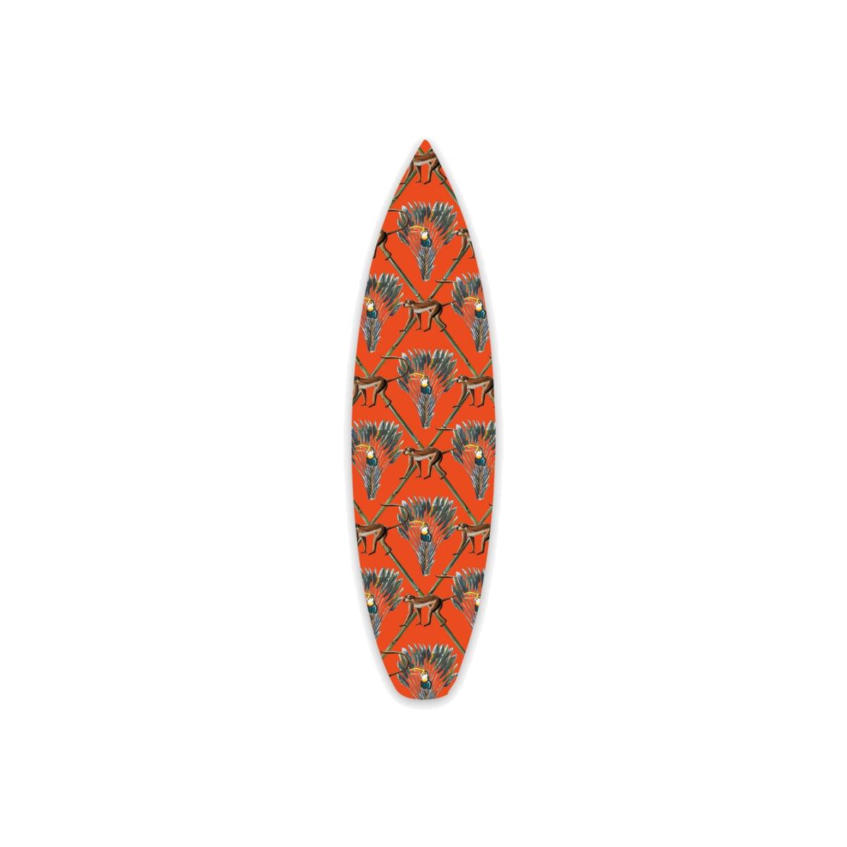 This decorative surfboard with monkeys and toucans has a colorful and playful look. This wall decor surfboard is a statement piece in any room. The wall decor surfboards are handmade of sustainable poplar wood in our creative manufacturing studio in The Hague, Netherlands. After the wall surfboard is ready, it will be provided with an original hand-painted art print from artist Femke Zwaan. Each artfully decorated design is first hand-painted by owner and designer Femke Zwaan and then meticulously translated into an art print to preserve the unique look of hand painting and fresh brush strokes. Catchii Homeware products enliven rooms and brighten up every interior.