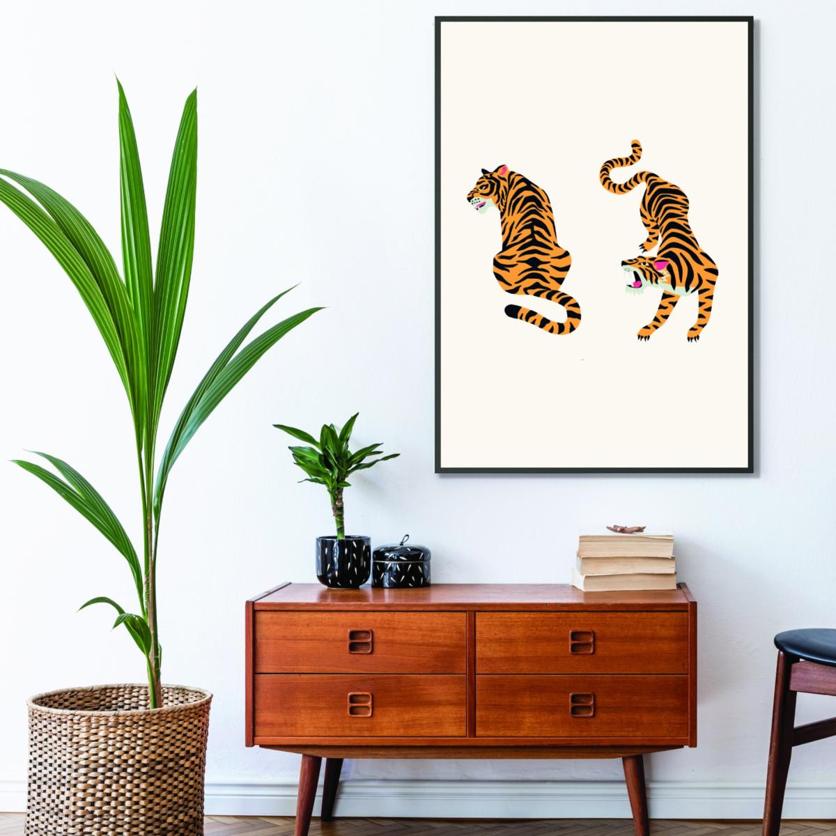 Yellow / Orange The Two Tigers A2 420 X 594Mm Stanley Print House