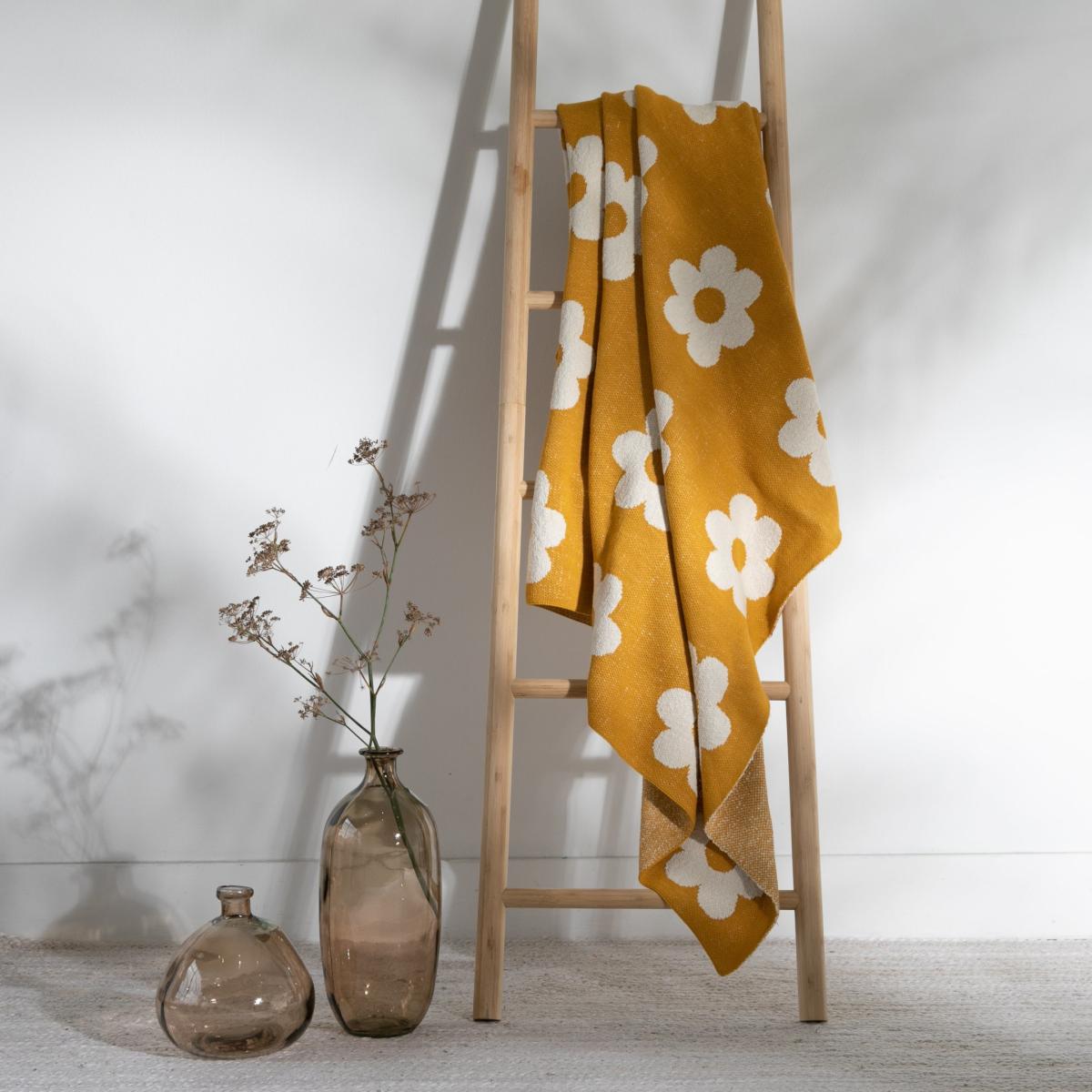 I love this yellow and orange flowered throw for its fun, retro vibe that brings warmth and colour to a space. It works particularly well in casual living rooms or bedrooms with a playful or vintage aesthetic, adding a pop of brightness without overwhelming. Practical styling tips include layering it over a neutral sofa or bed to create visual interest, or pairing it with other textured textiles like linen cushions or woven baskets for a cosy, eclectic look. Its bold floral pattern offers an easy way to inject colour and personality, making it a versatile piece for creating inviting, cheerful interiors.