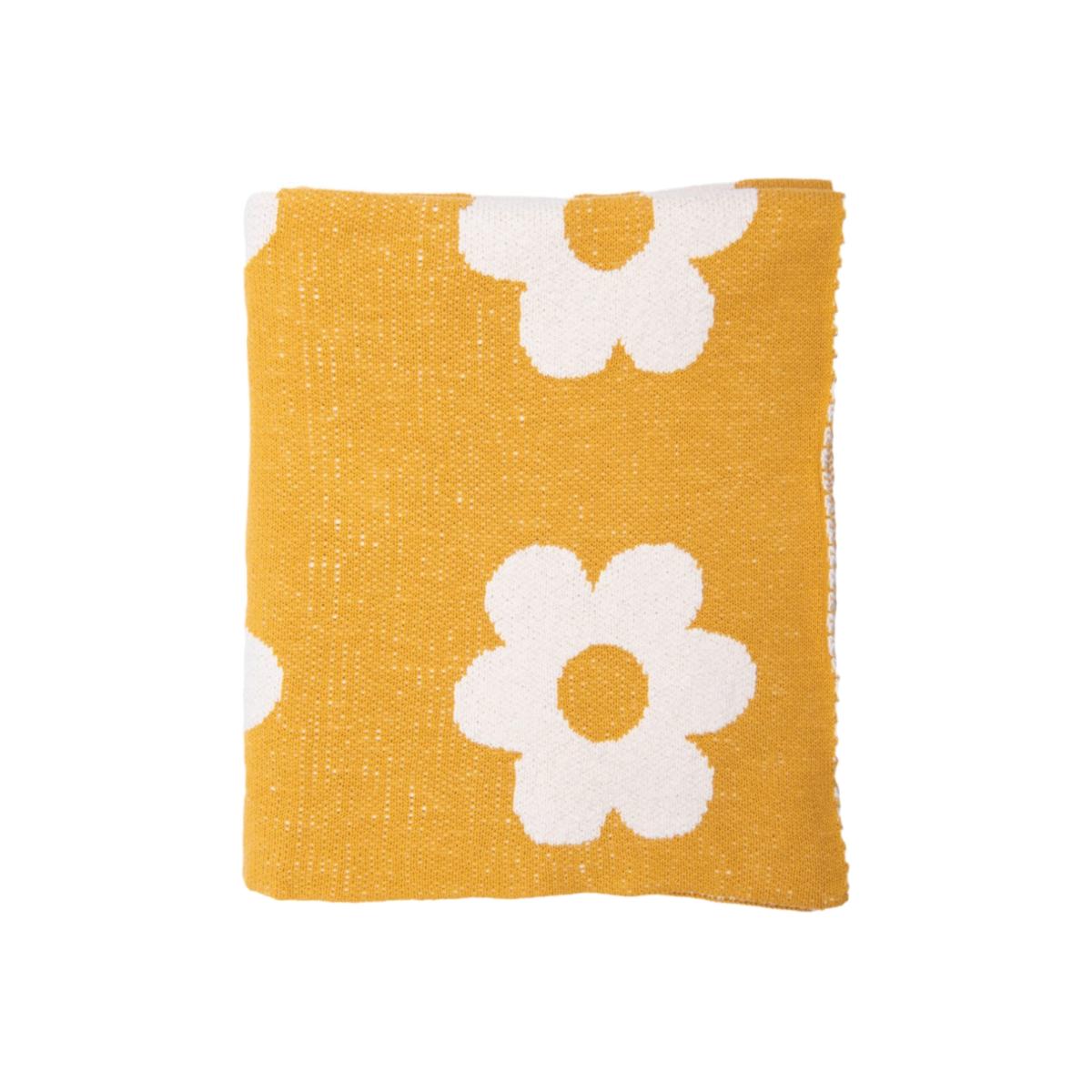 A flower is the ideal natural icon. This oversize simple repeat flower graphic on a solid color background will add an extra level of seasonal spring color to any room it lives in. This thick and thin twill knit with cheery flower pattern creates a soft safe space for snuggles and warm cuddles.
