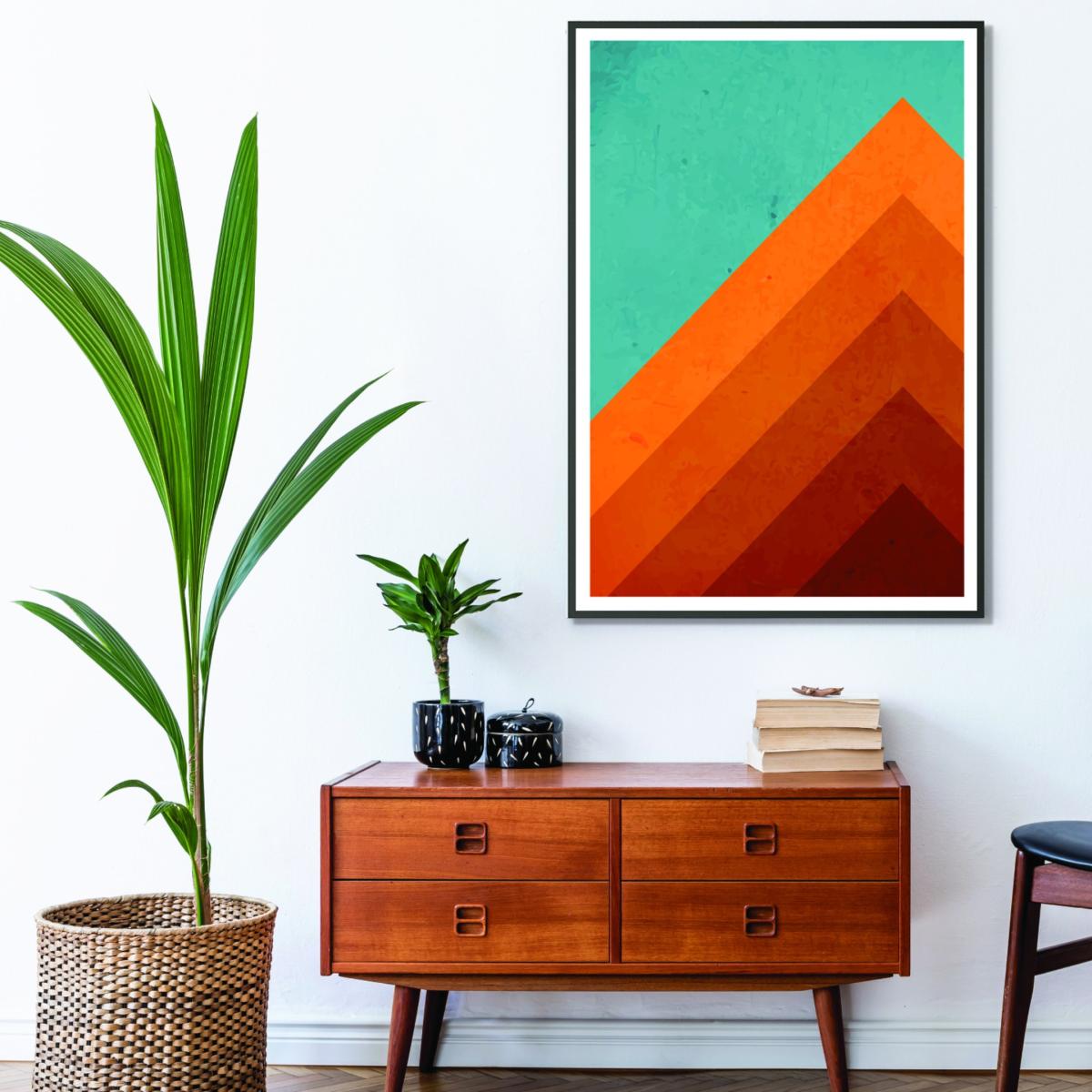 This top of the world print is a great choice for adding a vibrant, contemporary touch to modern interiors. I love how its bold orange and earthy tones can inject warmth and energy into a neutral space, making it ideal for living rooms or home offices. To style it effectively, consider pairing it with minimalist furniture to let the colours pop, or incorporate similar shades in cushions and décor accessories for a cohesive look. It also works well in spaces that could benefit from a splash of colour, such as kitchens or hallways, and can be framed simply for a sleek, modern finish or used as part of a gallery wall for a more eclectic feel. Practical tip: hang it at eye level and ensure the lighting enhances its vivid hues to really make it stand out.