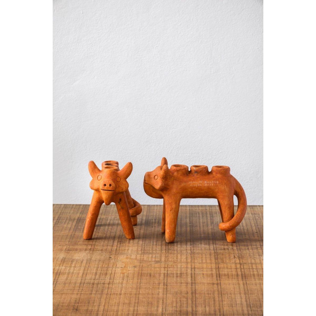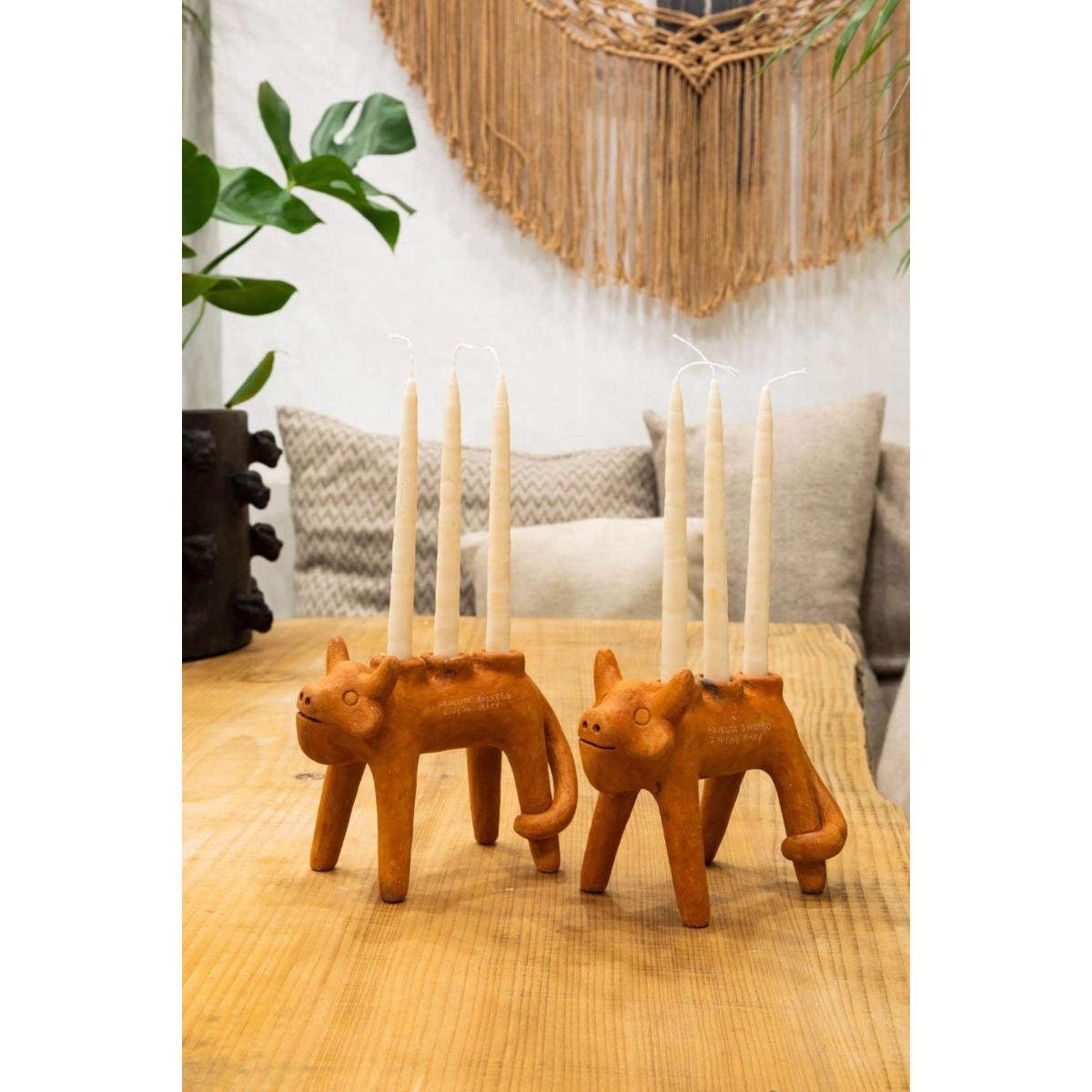 These clay taper candle holders offer a unique variation in shape and size and boast a matte finish. With stand-alone appeal, they also feel dynamic as a collection. Each piece is sold separately. These pieces of pottery are made of Mexican barro which is clay sourced from local mountain areas of Mexico. Handmade by humans in the mountains of Chiapas, Mexico. Differences in shape, finish applications and surfaces are to be expected and embraced. Wipe clean with a damp cloth.