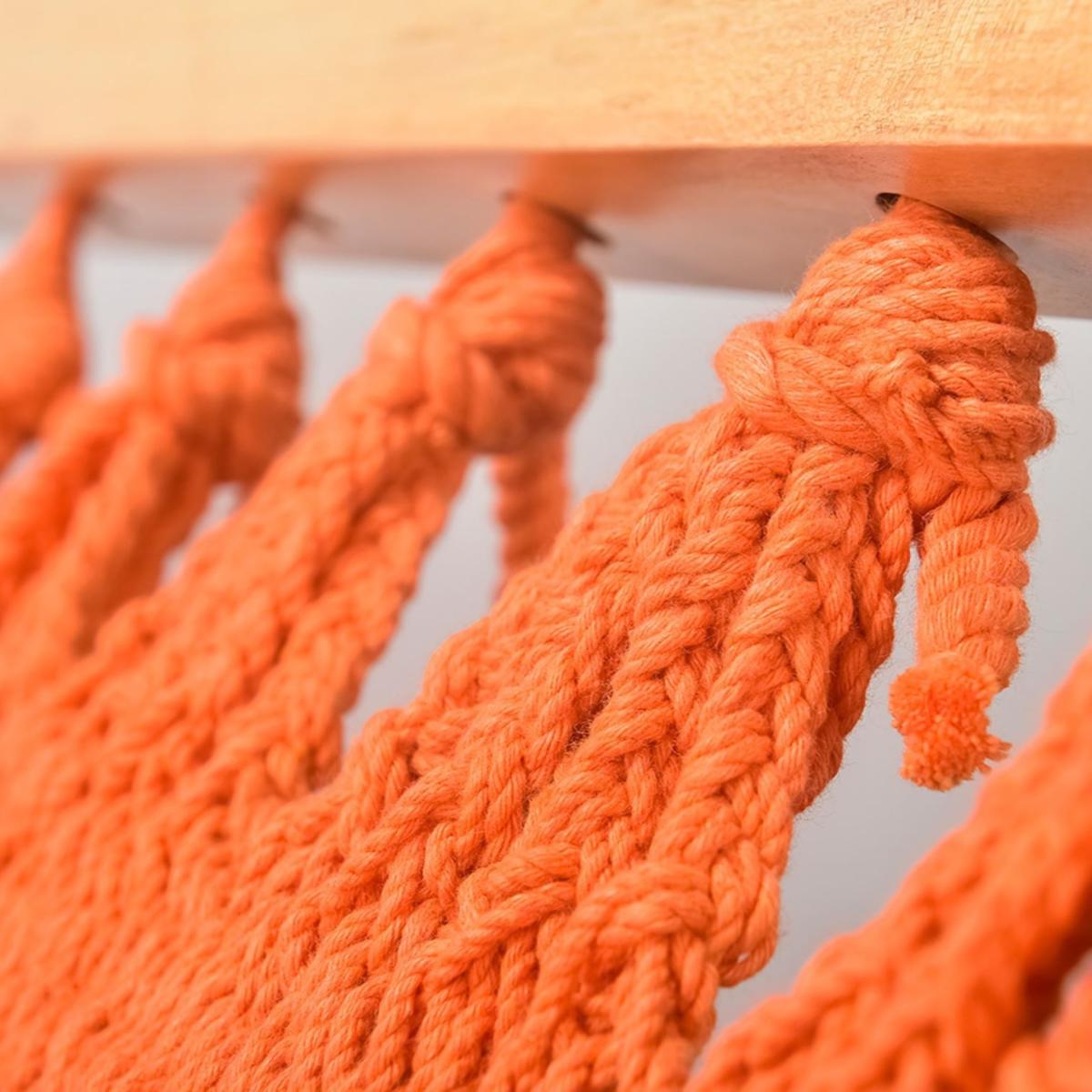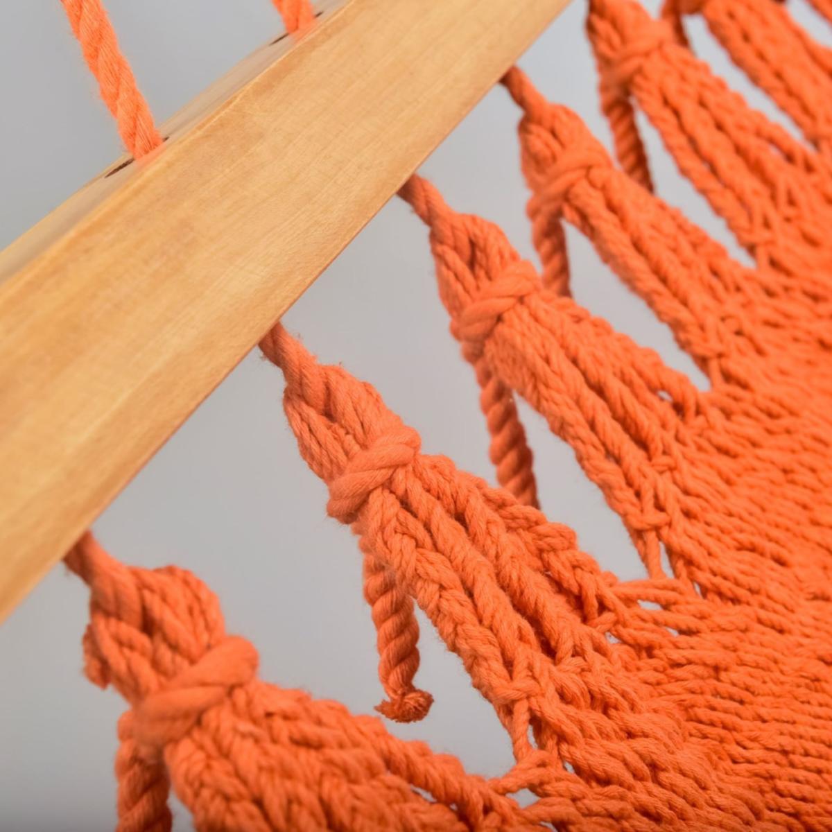 Yellow / Orange Vivid Orange Cotton Hammock - Teak Wooden Bar Artissanos
