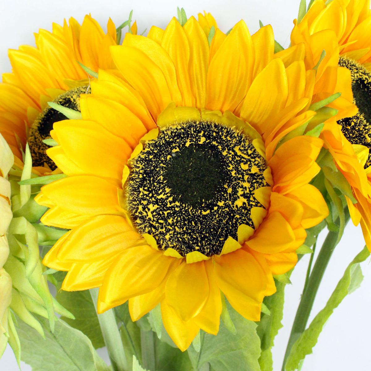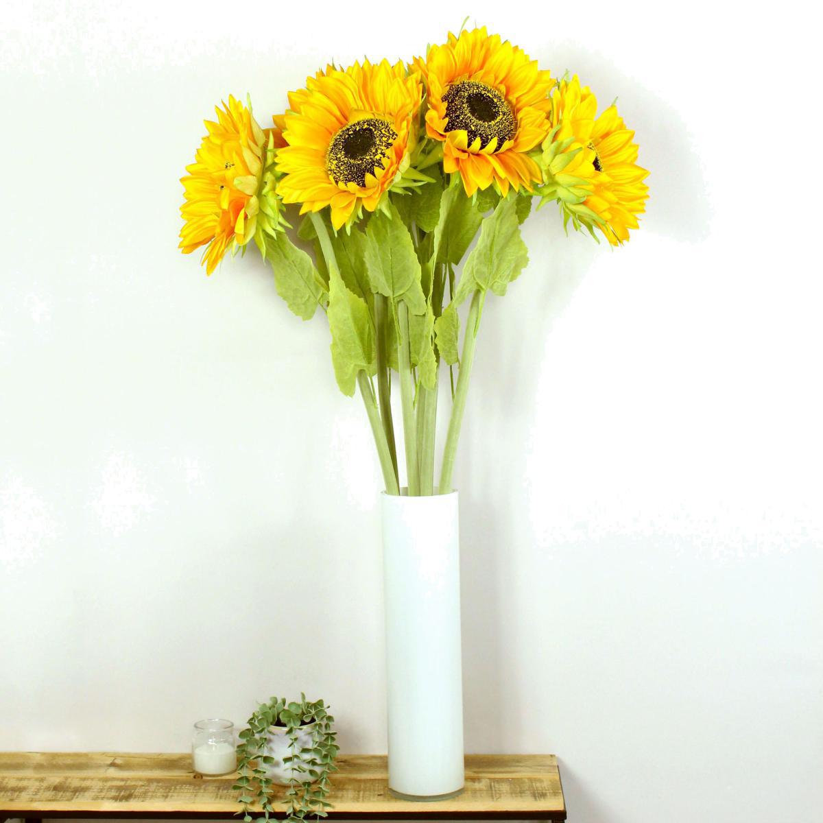 These stunning, large sunflower stems have a classic design and sunny yellow colourway that will complement an array of home decors. This pack of 6 has a realistic finish, making them ideal for vase display in any room of the house, either alone or as part of an arrangement.