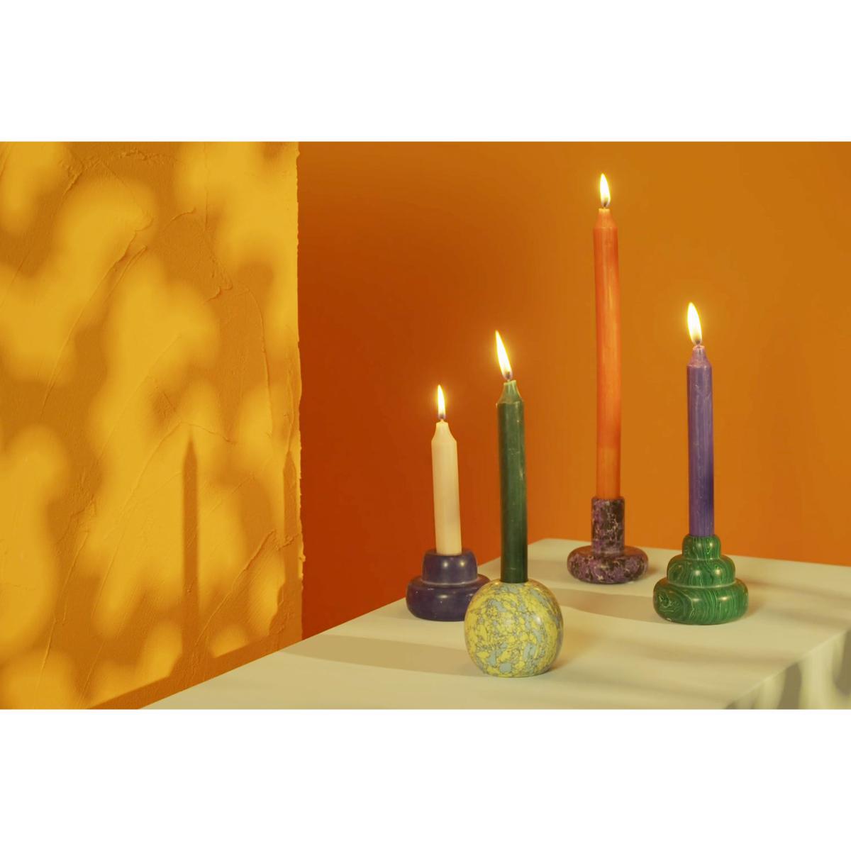 Mineral beauty… This collection consists of small candlesticks with complementary geometric shapes. They’re made of a material that imitates marble, consisting of stone powder combined with resin. The marble pattern provides superb mineral decoration.
