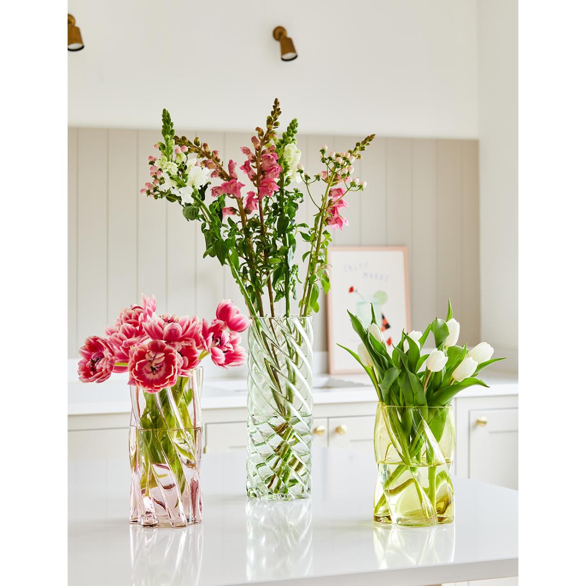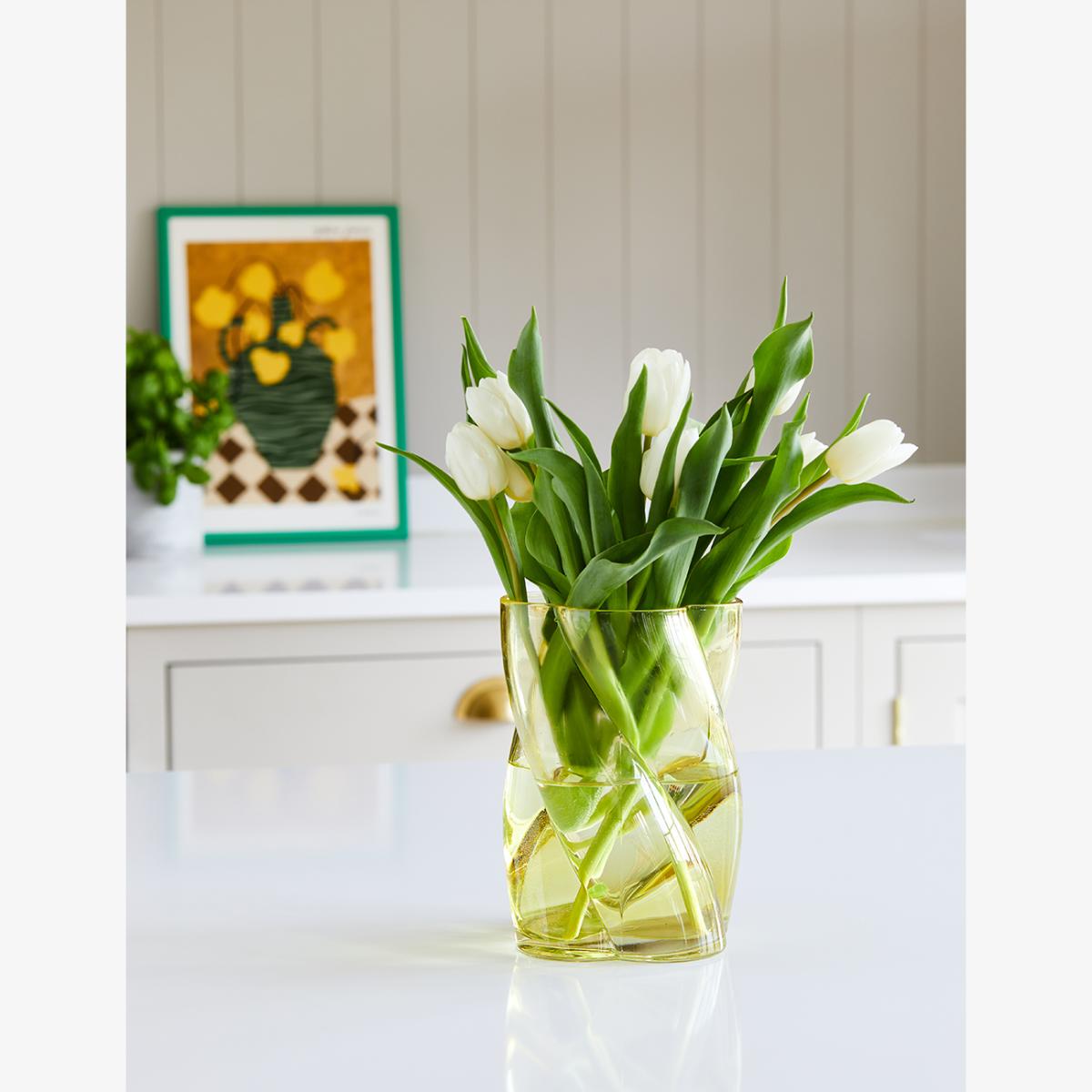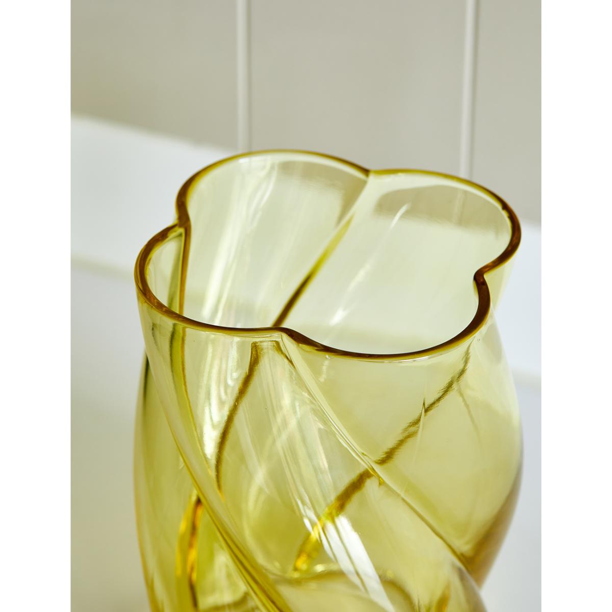 In a beautiful honey-golden hue, this Yellow Twisted Glass Vase is perfect for showcasing your fresh flowers and artificial plants. With its contemporary shape, this vase is 19.5cm in height and 13.5 in diameter, so there's plenty of space for your blooms to thrive and flourish. Pair with our Pink Twisted Glass Vase and Green Twisted Glass Vase for a decorative set that will add a touch of colour and joy to your home.