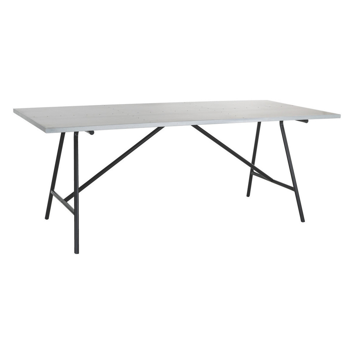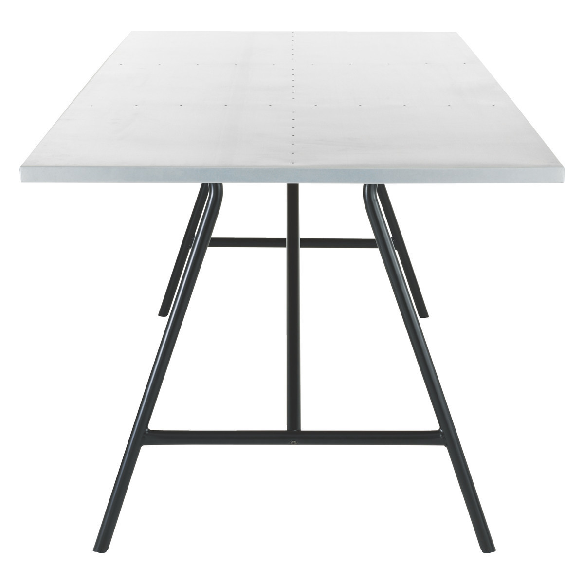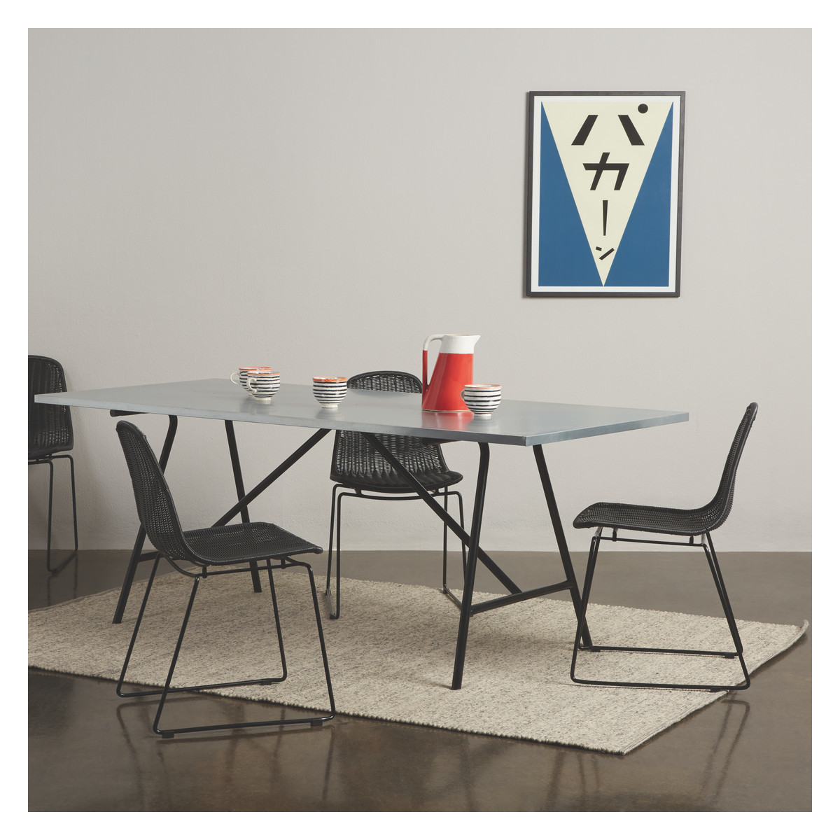 The Yeoman large zinc dining table is a contemporary design, perfect for relaxed suppers with family and friends. Hand applied nails are added to the zinc top for an industrial look. Zinc is a beautiful material that naturally develops a patina over time and will improve with age as the marks and dents in its surface tell the story of its life. Designed by Habitat's in-house team, Yeoman can seat up to 8 people and has a powder coated metal base, inspired by wallpaper tables. It is part of the Yeoman furniture range.
