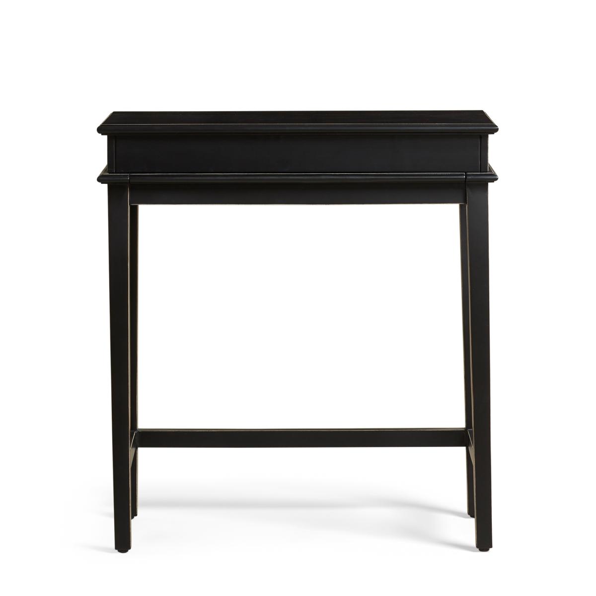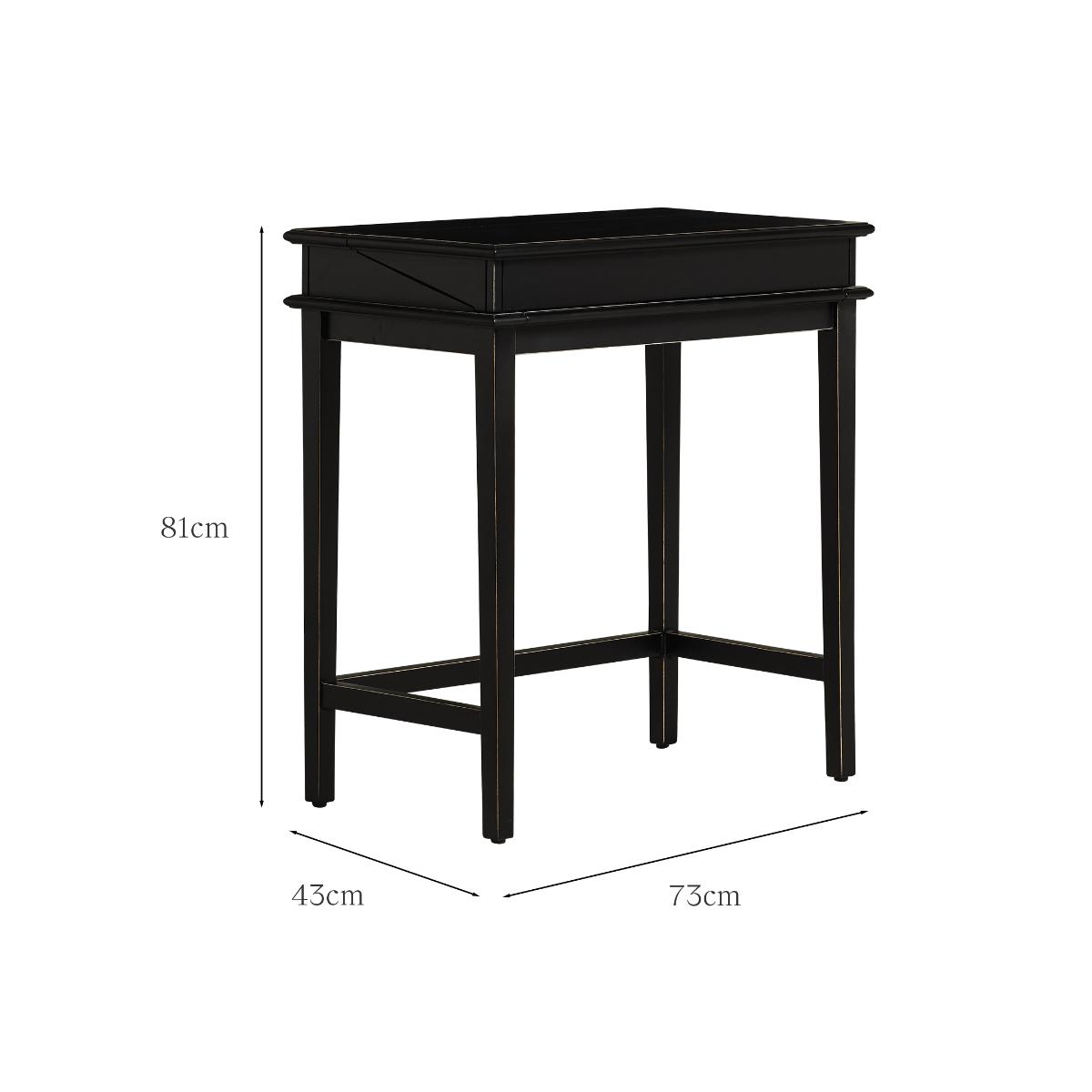 I love this piece for its understated elegance and versatile appeal. The rubbed black finish makes it a great choice for both classic and contemporary interiors, adding a touch of sophistication without feeling overly formal. It works particularly well in minimal or monochrome spaces, but can also be styled as a statement piece mixed with textured or coloured accessories for contrast. Practical styling tips include keeping the top clear for a sleek look, or adding a small lamp, a tray for stationery, and some favourite decor items to personalise the space. Its simple silhouette makes it easy to incorporate into a variety of rooms, from home offices to bedrooms, and its dark finish helps conceal everyday wear, making it a practical yet attractive choice.