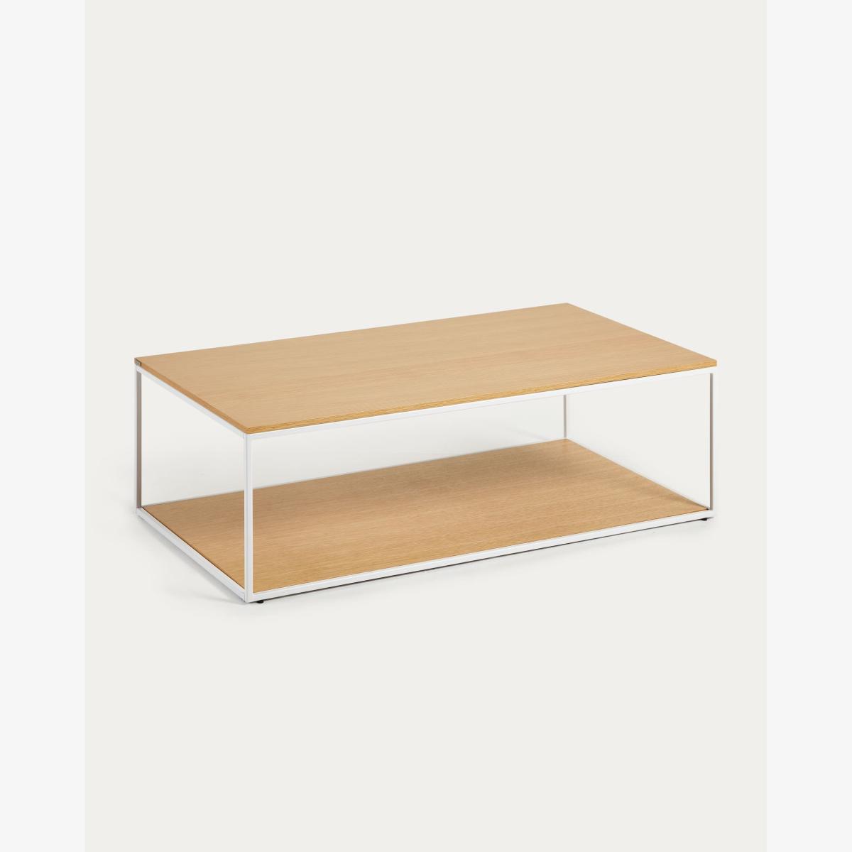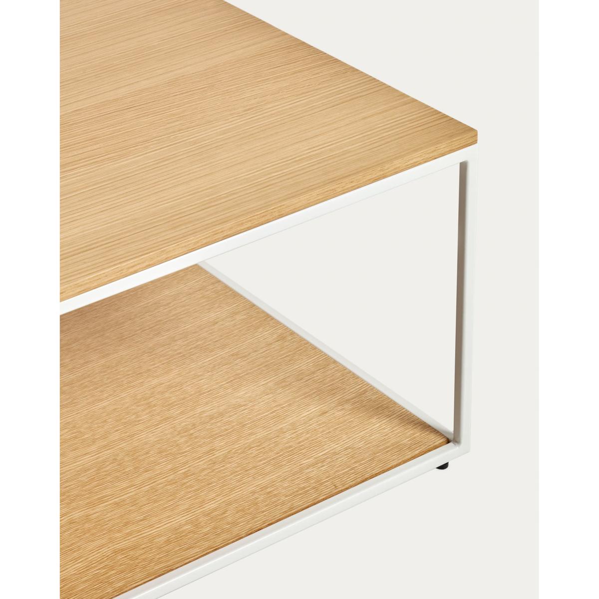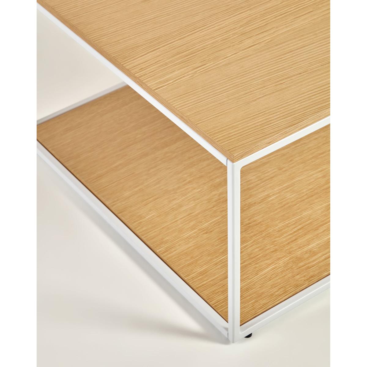 Yoana coffee table with oak veneer table top and base, white metal structure, 110 x 60 cm