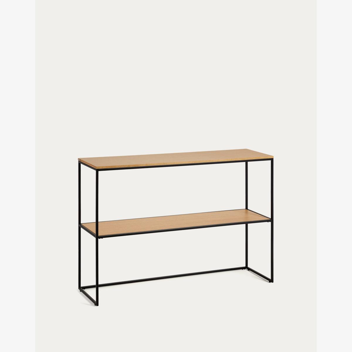 Yoana console table with oak wood veneer and painted black metal structure, 120 x 80 cm